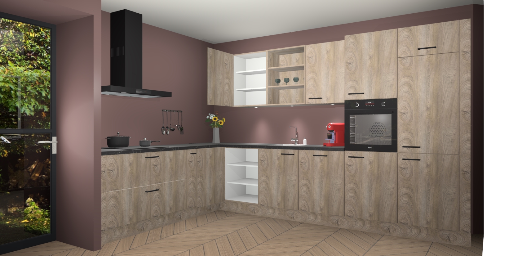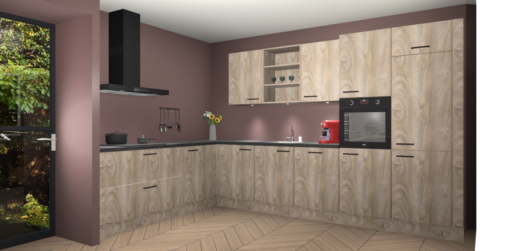 De Cantaro Eiken keuken Gotenburg is zo ontworpen dat u alle mogelijke vormen van opslagruimte kunt genieten. Bovendien heeft u meteen toegang tot vijf ingebouwde apparaten: een oven, inductiekookplaat, afzuigkap, vaatwasser en koelkast. Gewoon upgraden naar AEG na bestelling? Dit kan heel gemakkelijk worden geregeld. De deuren sluiten zacht dankzij zachtsluitende scharnieren en ze houden warmte vast terwijl ze uitzonderlijk stil blijven wanneer ze worden geopend of gesloten.