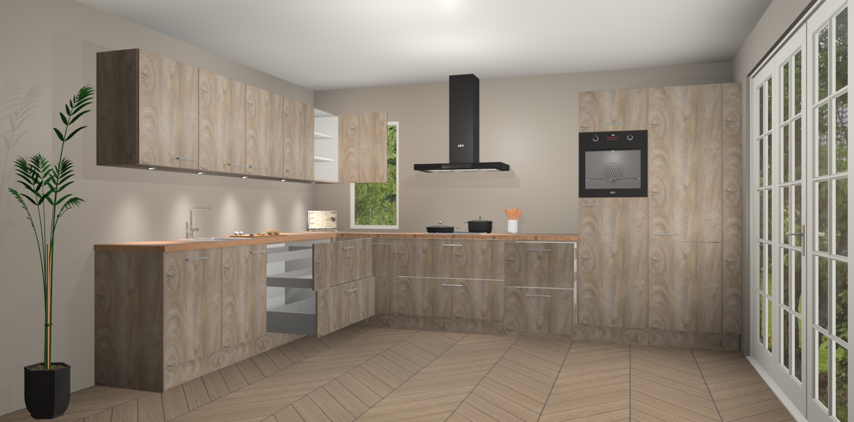 Heeft u nog apparatuur nodig? Geen probleem: de cantaro eiken keuken Harare bevat vijf ingebouwde apparaten - een oven, inductiekookplaat, afzuigkap, vaatwasser en koelkast - die gemakkelijk kunnen worden bijgewerkt naar AEG na bestelling. En als dat nog niet genoeg is; onze kasten worden pre-geassembleerd geleverd en zijn verkrijgbaar tegen een vastgeroeste lage prijs! U hoeft nooit meer te zoeken naar goede kwaliteit en service want onze producten hebben echt Duitse kwaliteit.