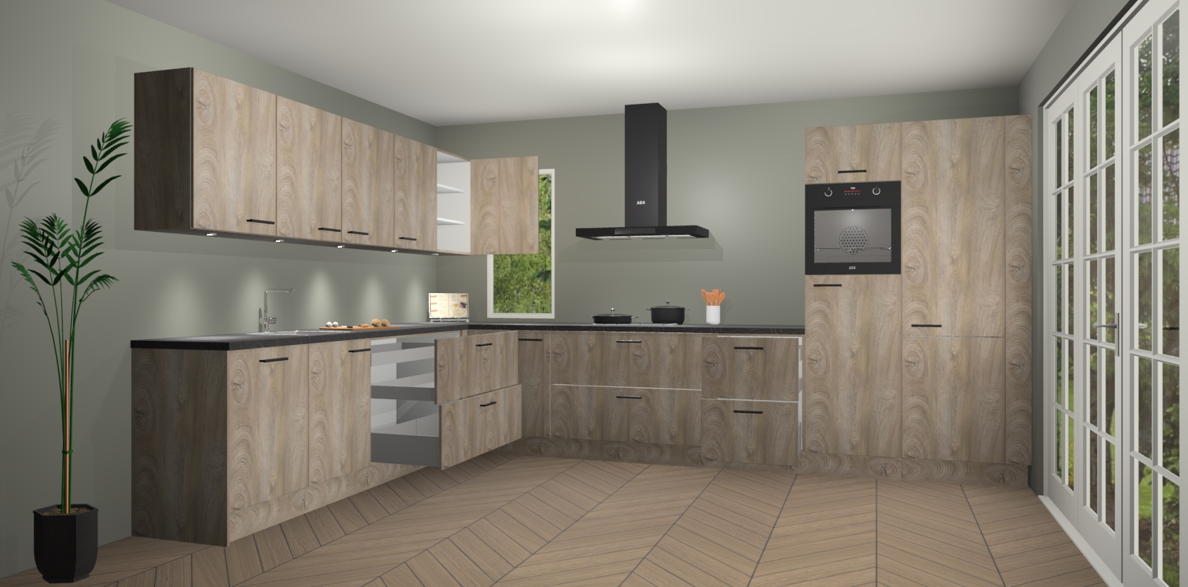 Kom dichtbij de perfecte keuken van uw dromen met de cantaro eiken keuken Harare. Met een prachtige houtlook en eigentijds ontwerp, straalt deze keuken warmte en sfeer uit. Of u nu liefhebber bent van traditionele of moderne stijlen, er is genoeg ruimte om aan al uw behoeften te voldoen.