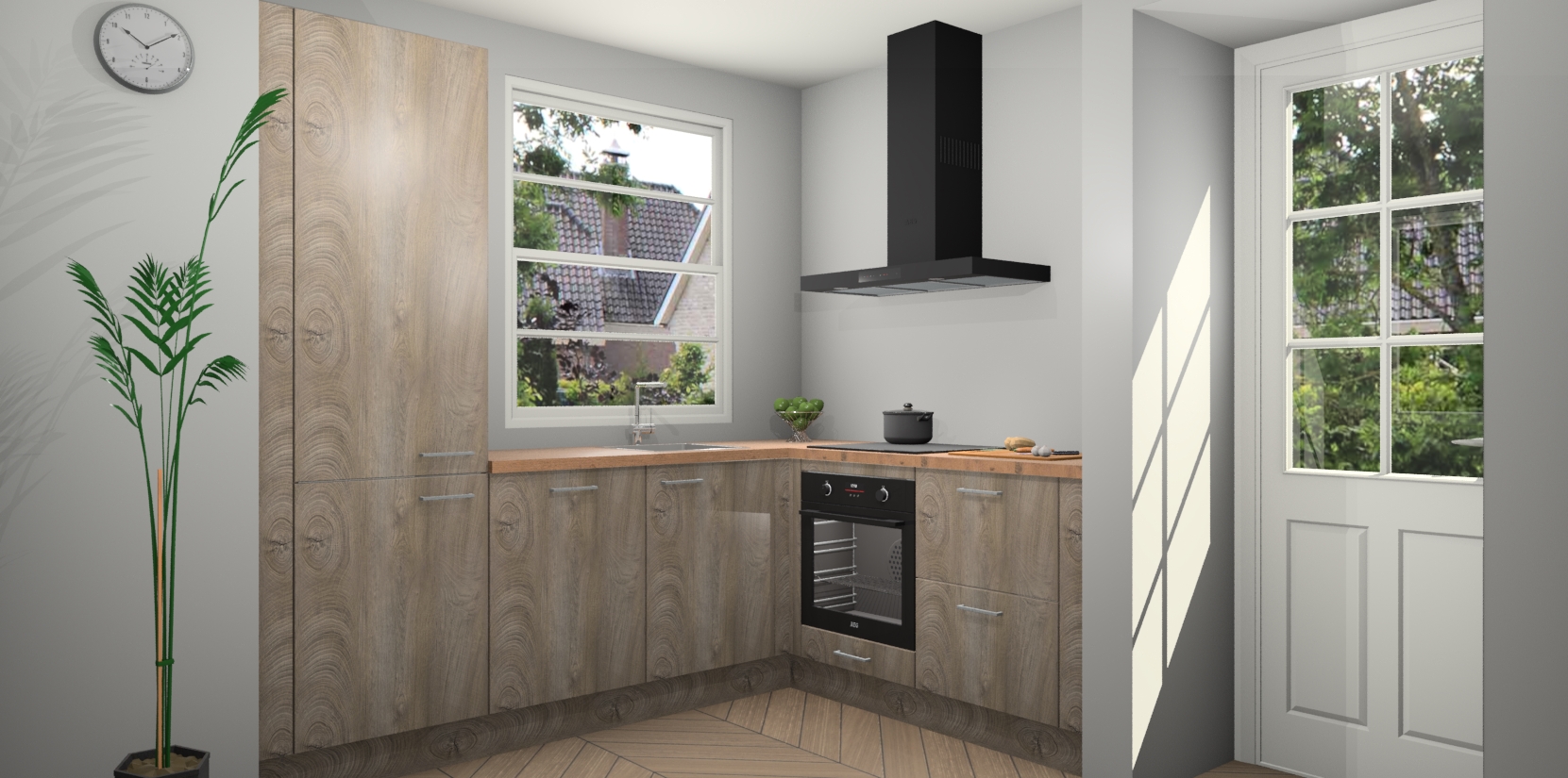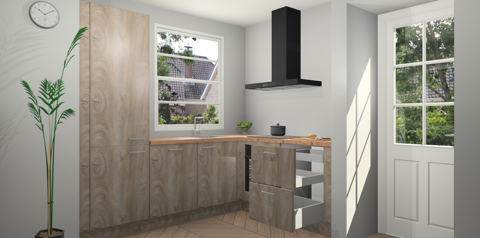 Wilt u een echte aanwinst voor uw keuken, maar bent u op zoek naar iets specialers dan de standaardkeukens? Kies dan voor de Cantaro Eiken keuken Harbin! Dit prachtige hoekkeukenontwerp geeft u alle ruimte om optimaal te genieten van heerlijk koken. Het uitmuntende afwerkingsniveau, de fraaie houtstructuur en de sfeervolle zwarte grepen maken van de Cantaro Eiken keuken Harbin de perfecte keuze voor zowel enthousiaste thuiskoks als design-minded interieurliefhebbers.