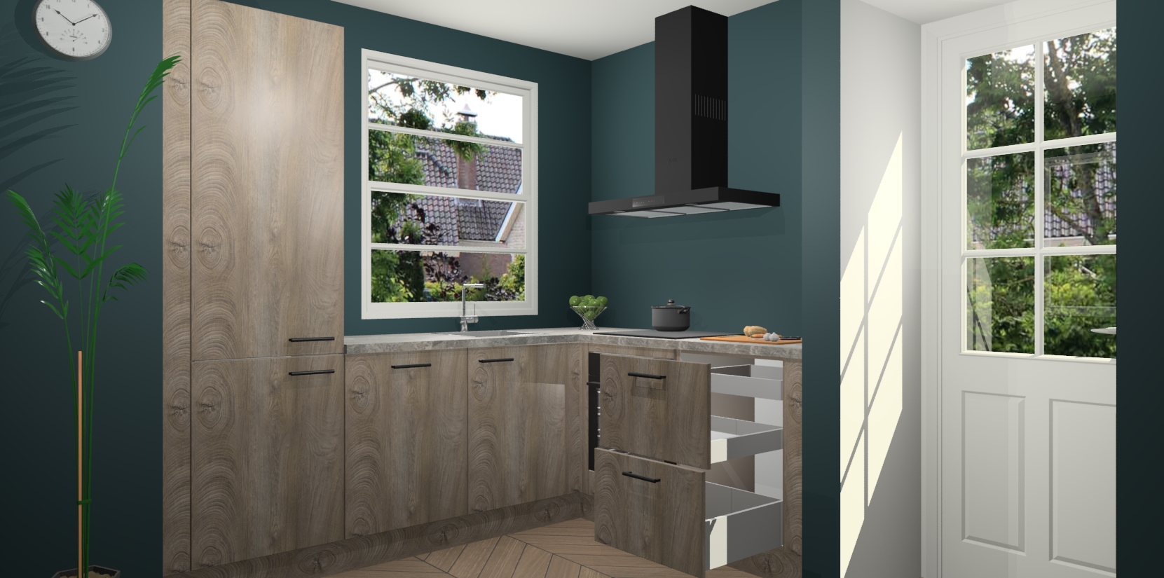 Wilt u een echte aanwinst voor uw keuken, maar bent u op zoek naar iets specialers dan de standaardkeukens? Kies dan voor de Cantaro Eiken keuken Harbin! Dit prachtige hoekkeukenontwerp geeft u alle ruimte om optimaal te genieten van heerlijk koken. Het uitmuntende afwerkingsniveau, de fraaie houtstructuur en de sfeervolle zwarte grepen maken van de Cantaro Eiken keuken Harbin de perfecte keuze voor zowel enthousiaste thuiskoks als design-minded interieurliefhebbers.