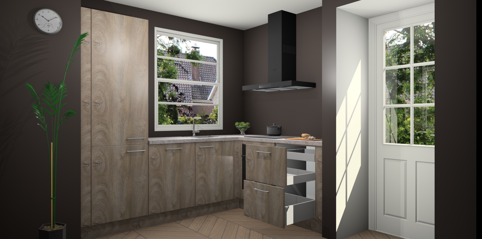 Wilt u een echte aanwinst voor uw keuken, maar bent u op zoek naar iets specialers dan de standaardkeukens? Kies dan voor de Cantaro Eiken keuken Harbin! Dit prachtige hoekkeukenontwerp geeft u alle ruimte om optimaal te genieten van heerlijk koken. Het uitmuntende afwerkingsniveau, de fraaie houtstructuur en de sfeervolle zwarte grepen maken van de Cantaro Eiken keuken Harbin de perfecte keuze voor zowel enthousiaste thuiskoks als design-minded interieurliefhebbers.