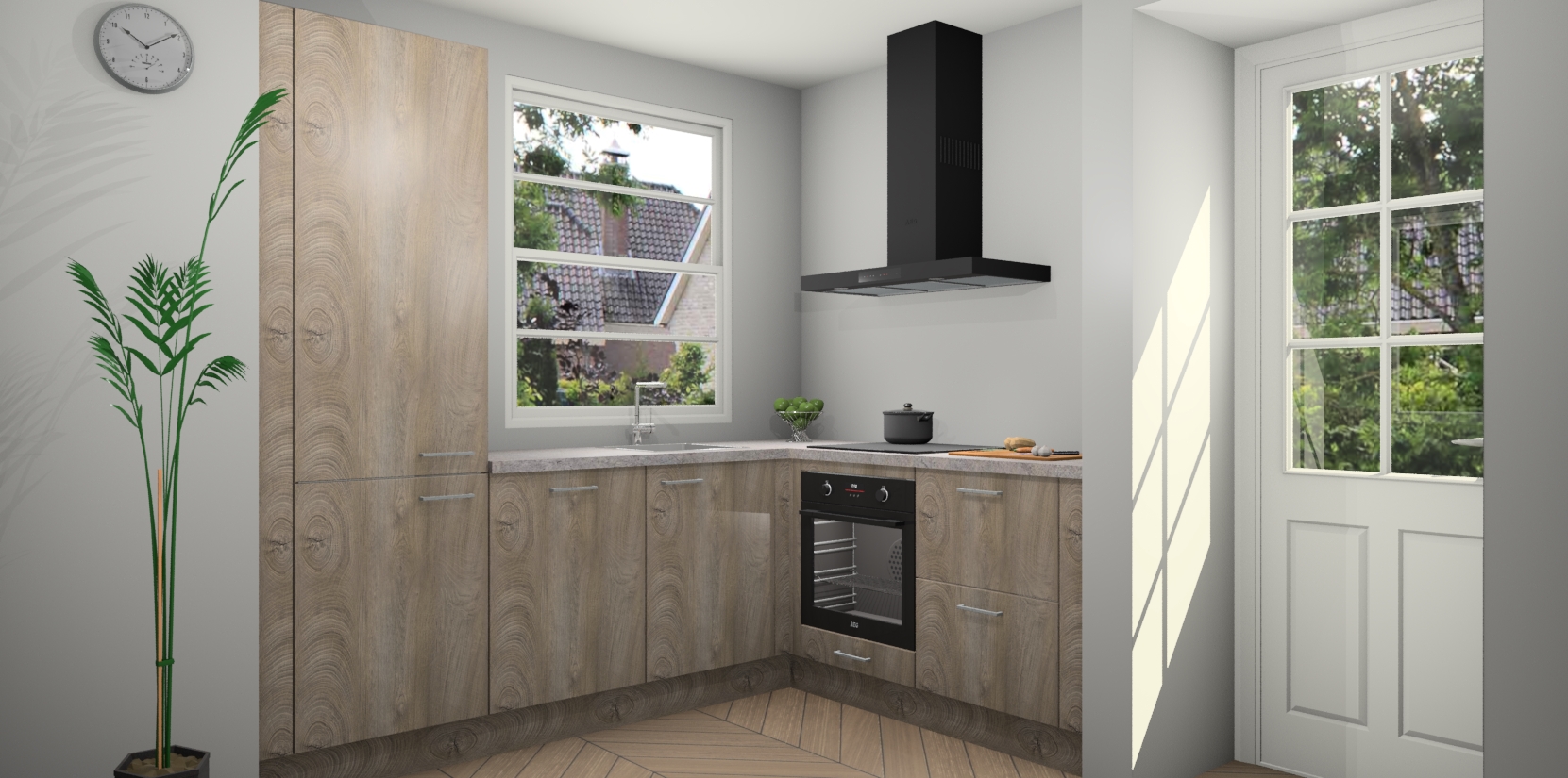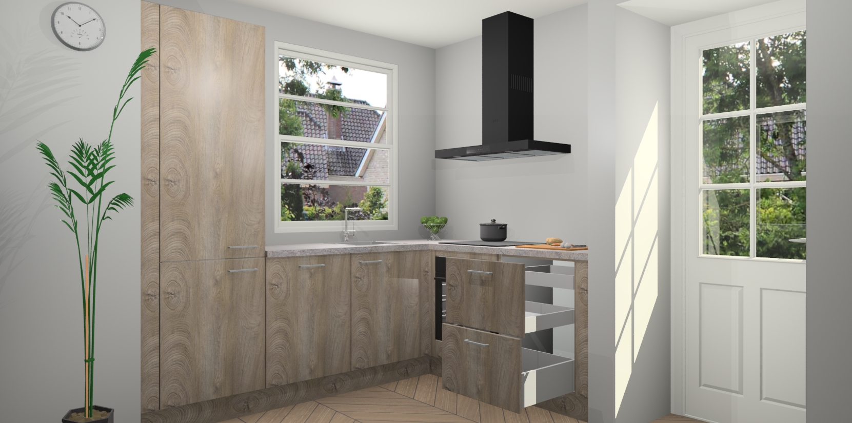 Wilt u een echte aanwinst voor uw keuken, maar bent u op zoek naar iets specialers dan de standaardkeukens? Kies dan voor de Cantaro Eiken keuken Harbin! Dit prachtige hoekkeukenontwerp geeft u alle ruimte om optimaal te genieten van heerlijk koken. Het uitmuntende afwerkingsniveau, de fraaie houtstructuur en de sfeervolle zwarte grepen maken van de Cantaro Eiken keuken Harbin de perfecte keuze voor zowel enthousiaste thuiskoks als design-minded interieurliefhebbers.