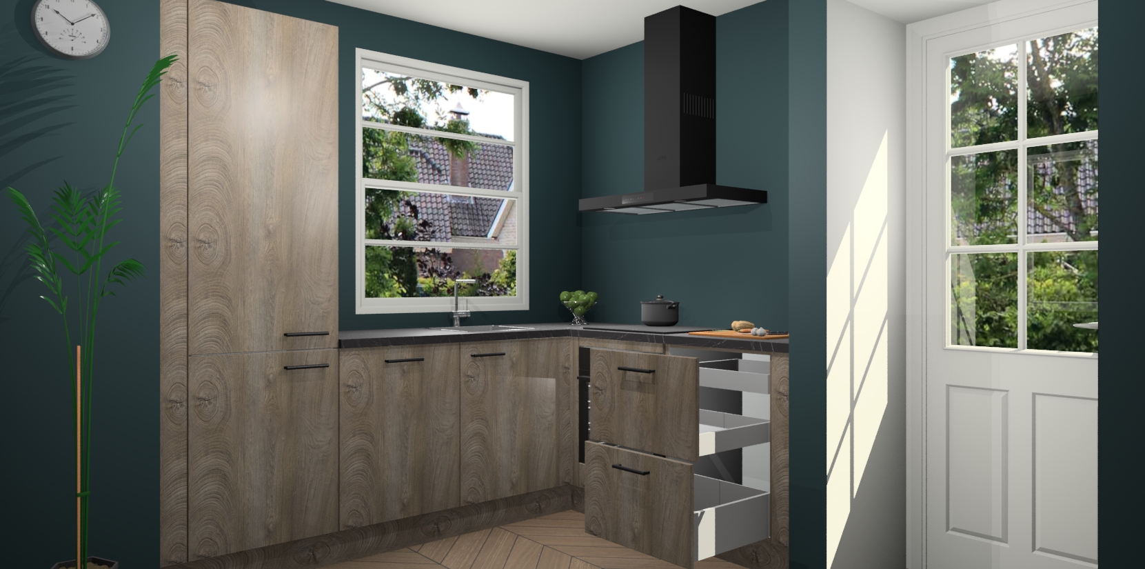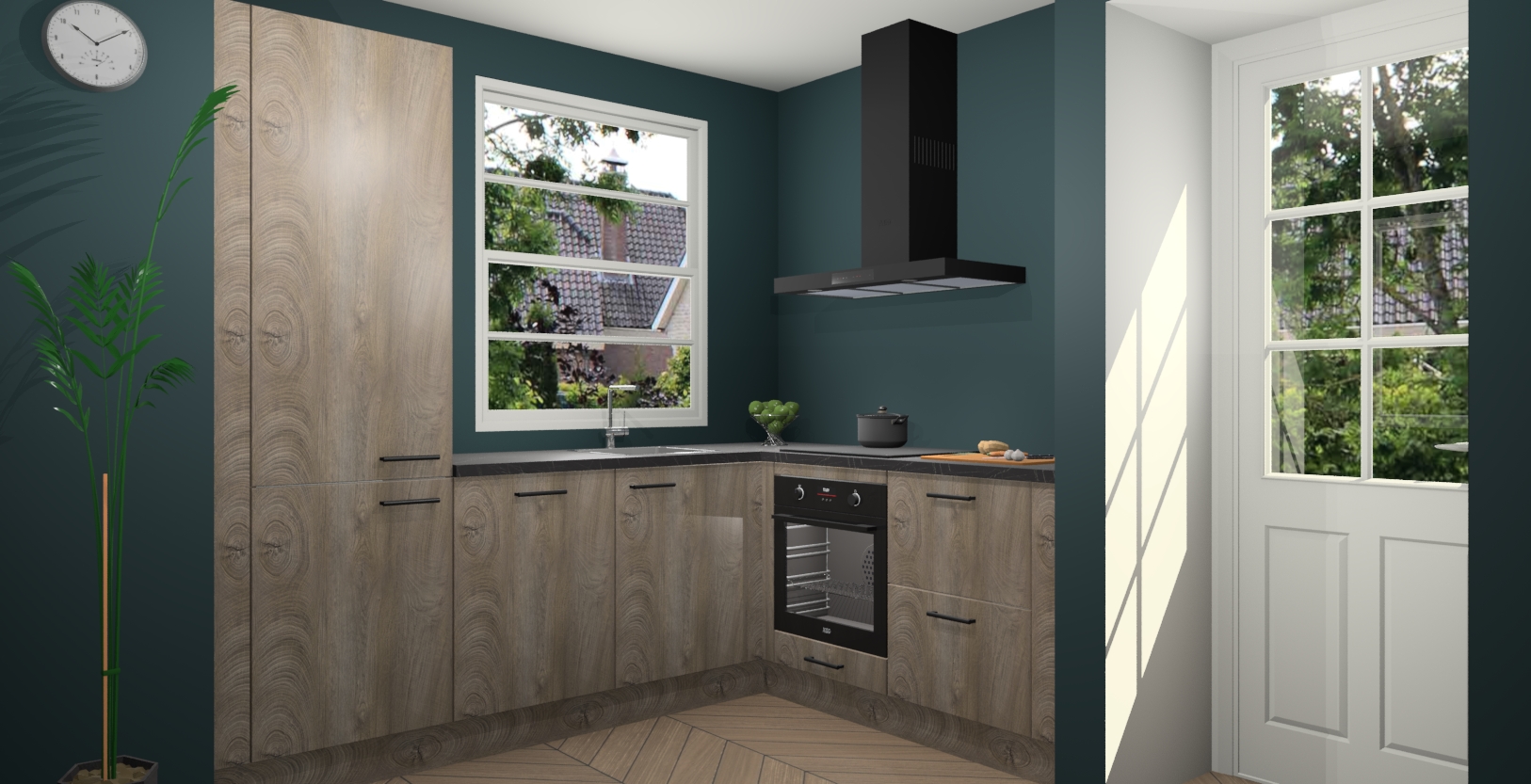Wilt u een echte aanwinst voor uw keuken, maar bent u op zoek naar iets specialers dan de standaardkeukens? Kies dan voor de Cantaro Eiken keuken Harbin! Dit prachtige hoekkeukenontwerp geeft u alle ruimte om optimaal te genieten van heerlijk koken. Het uitmuntende afwerkingsniveau, de fraaie houtstructuur en de sfeervolle zwarte grepen maken van de Cantaro Eiken keuken Harbin de perfecte keuze voor zowel enthousiaste thuiskoks als design-minded interieurliefhebbers.