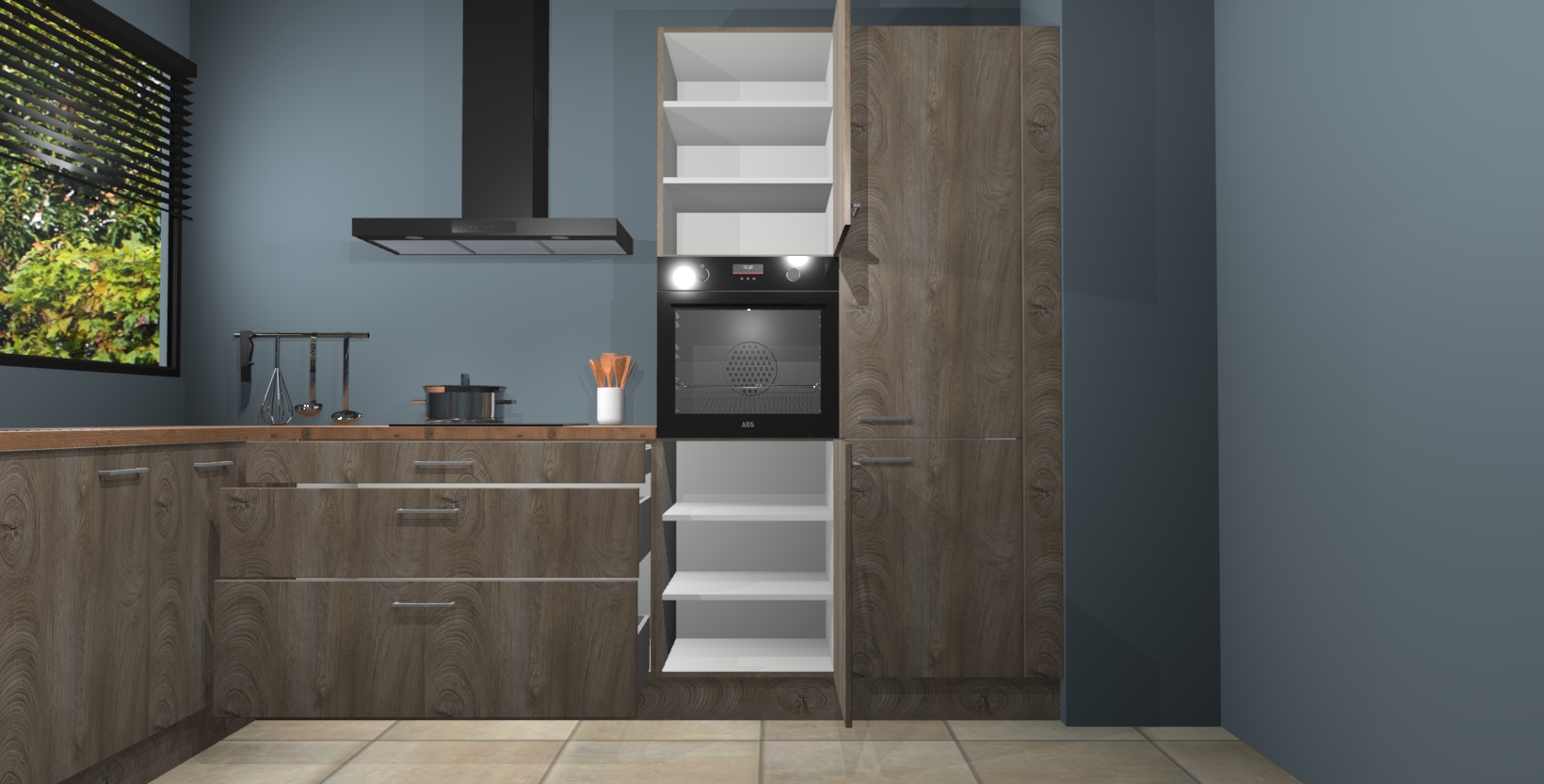 Met een modern, tijdloos design en ruime opslagruimte, zult u zich in no-time thuis voelen in uw nieuwe keuken. Uw leven wordt eenvoudiger met de soft-close deuren die voor het ultieme stille comfort zorgen - geen geluid dat u stoort terwijl u kookt. Ook is de keuken voorzien van 5 ingebouwde apparaten: een oven, inductie kookplaat, afzuigkap, vaatwasser en koelkast. Deze kunnen gemakkelijk na bestelling worden bijgewerkt naar AEG - waardoor uw luxe ervaring compleet is.