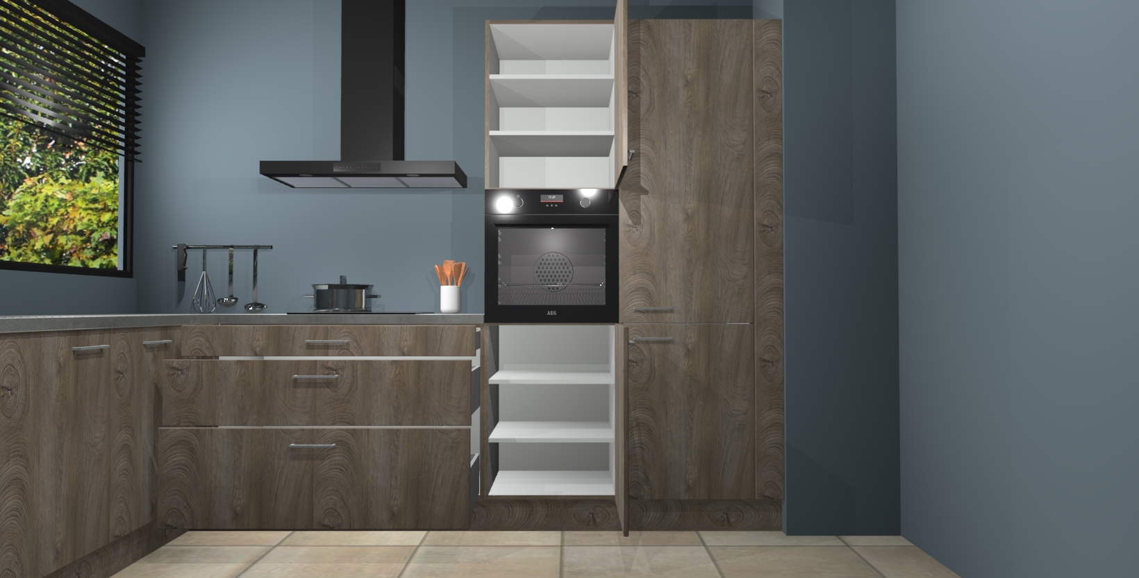 Met een modern, tijdloos design en ruime opslagruimte, zult u zich in no-time thuis voelen in uw nieuwe keuken. Uw leven wordt eenvoudiger met de soft-close deuren die voor het ultieme stille comfort zorgen - geen geluid dat u stoort terwijl u kookt. Ook is de keuken voorzien van 5 ingebouwde apparaten: een oven, inductie kookplaat, afzuigkap, vaatwasser en koelkast. Deze kunnen gemakkelijk na bestelling worden bijgewerkt naar AEG - waardoor uw luxe ervaring compleet is.