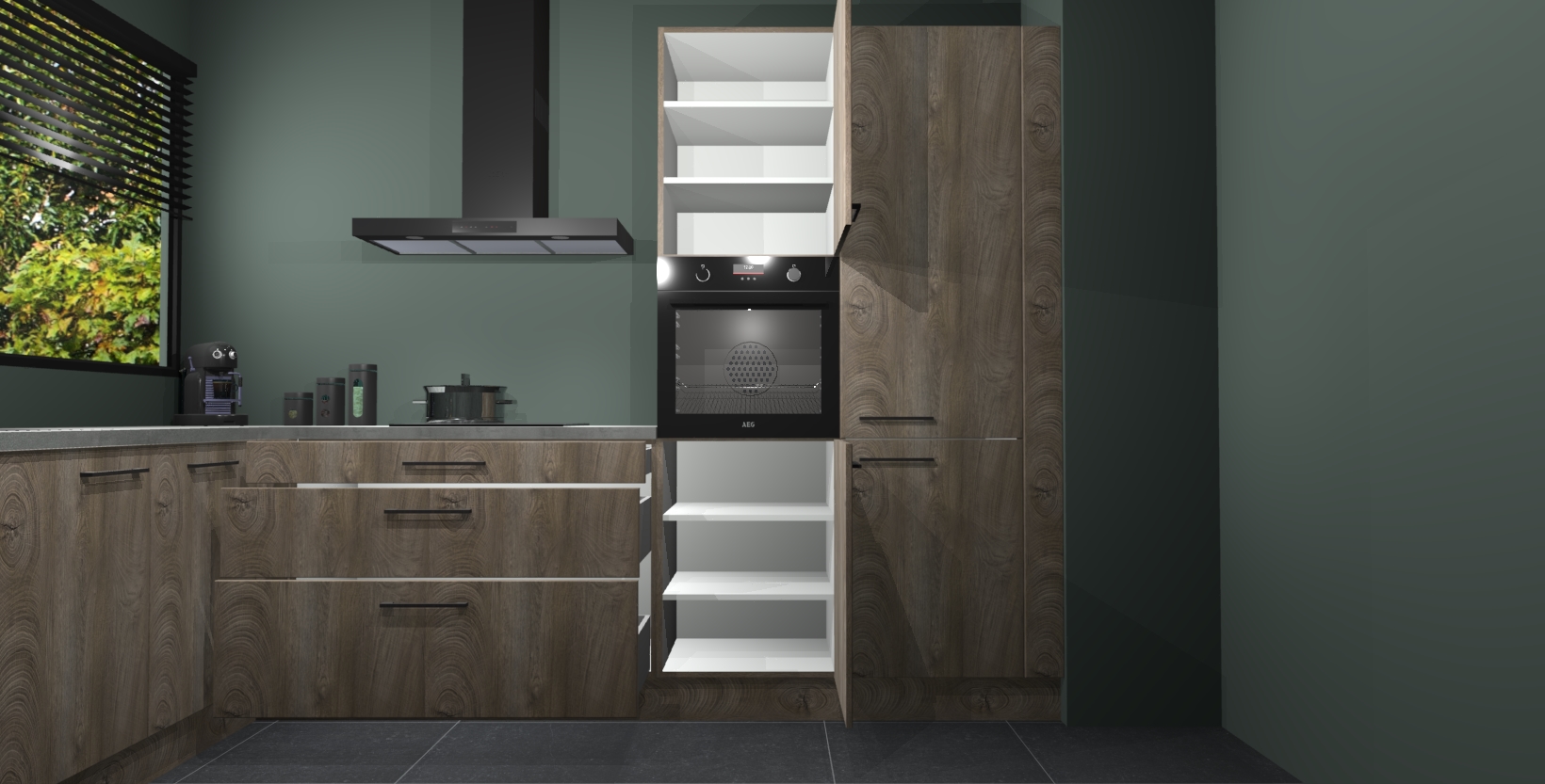 Met een modern, tijdloos design en ruime opslagruimte, zult u zich in no-time thuis voelen in uw nieuwe keuken. Uw leven wordt eenvoudiger met de soft-close deuren die voor het ultieme stille comfort zorgen - geen geluid dat u stoort terwijl u kookt. Ook is de keuken voorzien van 5 ingebouwde apparaten: een oven, inductie kookplaat, afzuigkap, vaatwasser en koelkast. Deze kunnen gemakkelijk na bestelling worden bijgewerkt naar AEG - waardoor uw luxe ervaring compleet is.