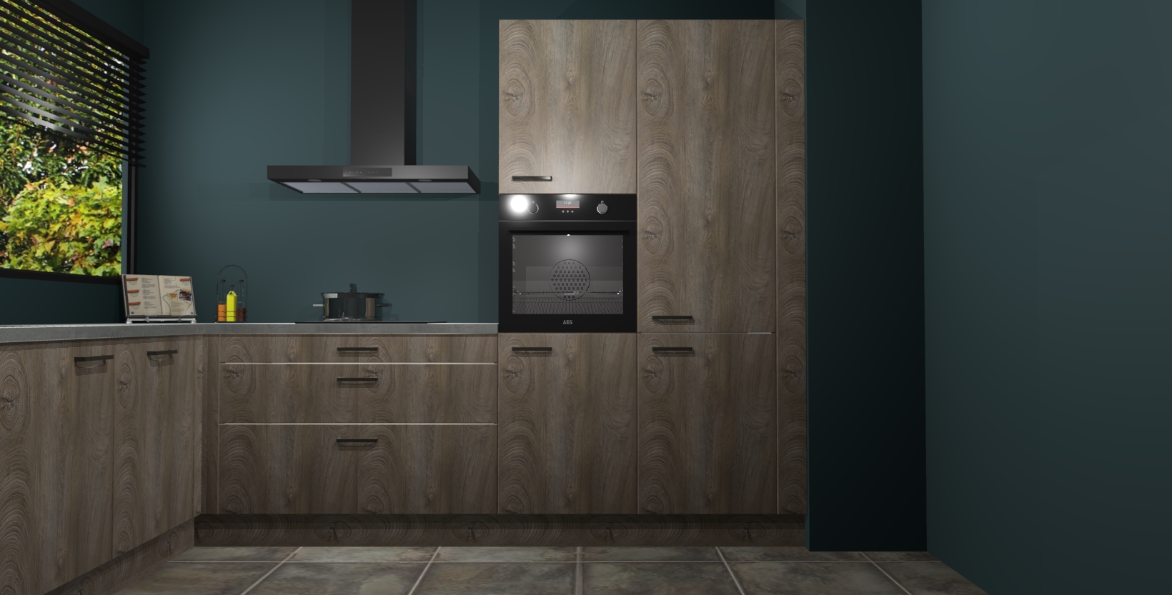 Met een modern, tijdloos design en ruime opslagruimte, zult u zich in no-time thuis voelen in uw nieuwe keuken. Uw leven wordt eenvoudiger met de soft-close deuren die voor het ultieme stille comfort zorgen - geen geluid dat u stoort terwijl u kookt. Ook is de keuken voorzien van 5 ingebouwde apparaten: een oven, inductie kookplaat, afzuigkap, vaatwasser en koelkast. Deze kunnen gemakkelijk na bestelling worden bijgewerkt naar AEG - waardoor uw luxe ervaring compleet is.