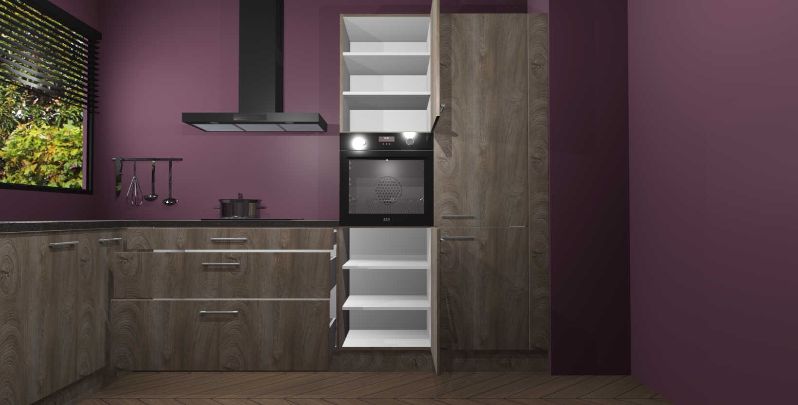 Met een modern, tijdloos design en ruime opslagruimte, zult u zich in no-time thuis voelen in uw nieuwe keuken. Uw leven wordt eenvoudiger met de soft-close deuren die voor het ultieme stille comfort zorgen - geen geluid dat u stoort terwijl u kookt. Ook is de keuken voorzien van 5 ingebouwde apparaten: een oven, inductie kookplaat, afzuigkap, vaatwasser en koelkast. Deze kunnen gemakkelijk na bestelling worden bijgewerkt naar AEG - waardoor uw luxe ervaring compleet is.