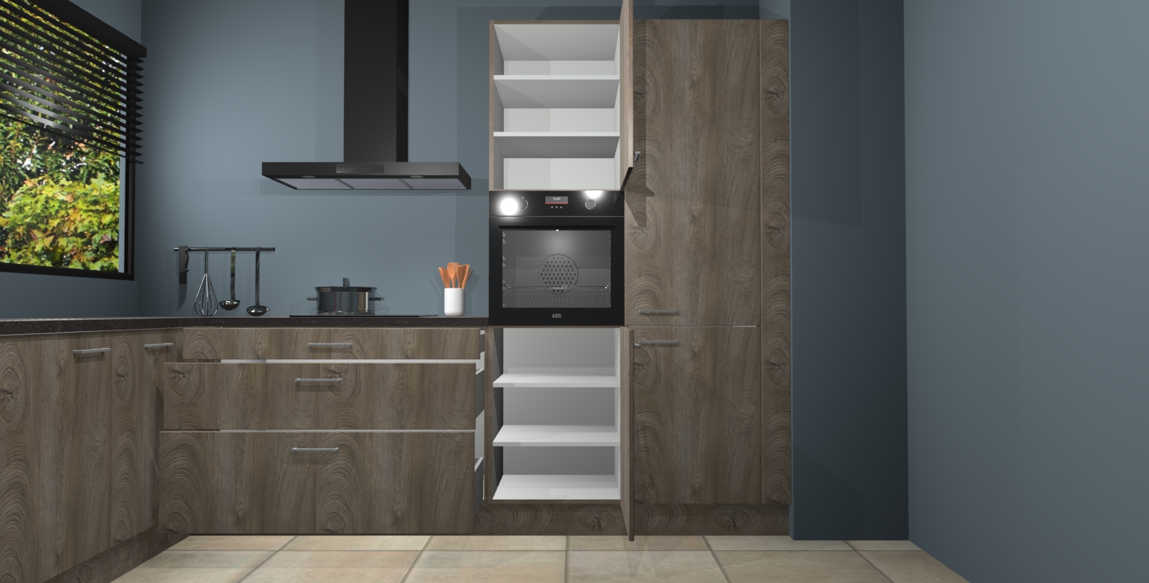 Met een modern, tijdloos design en ruime opslagruimte, zult u zich in no-time thuis voelen in uw nieuwe keuken. Uw leven wordt eenvoudiger met de soft-close deuren die voor het ultieme stille comfort zorgen - geen geluid dat u stoort terwijl u kookt. Ook is de keuken voorzien van 5 ingebouwde apparaten: een oven, inductie kookplaat, afzuigkap, vaatwasser en koelkast. Deze kunnen gemakkelijk na bestelling worden bijgewerkt naar AEG - waardoor uw luxe ervaring compleet is.