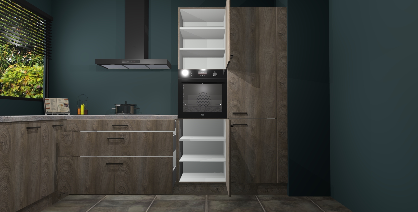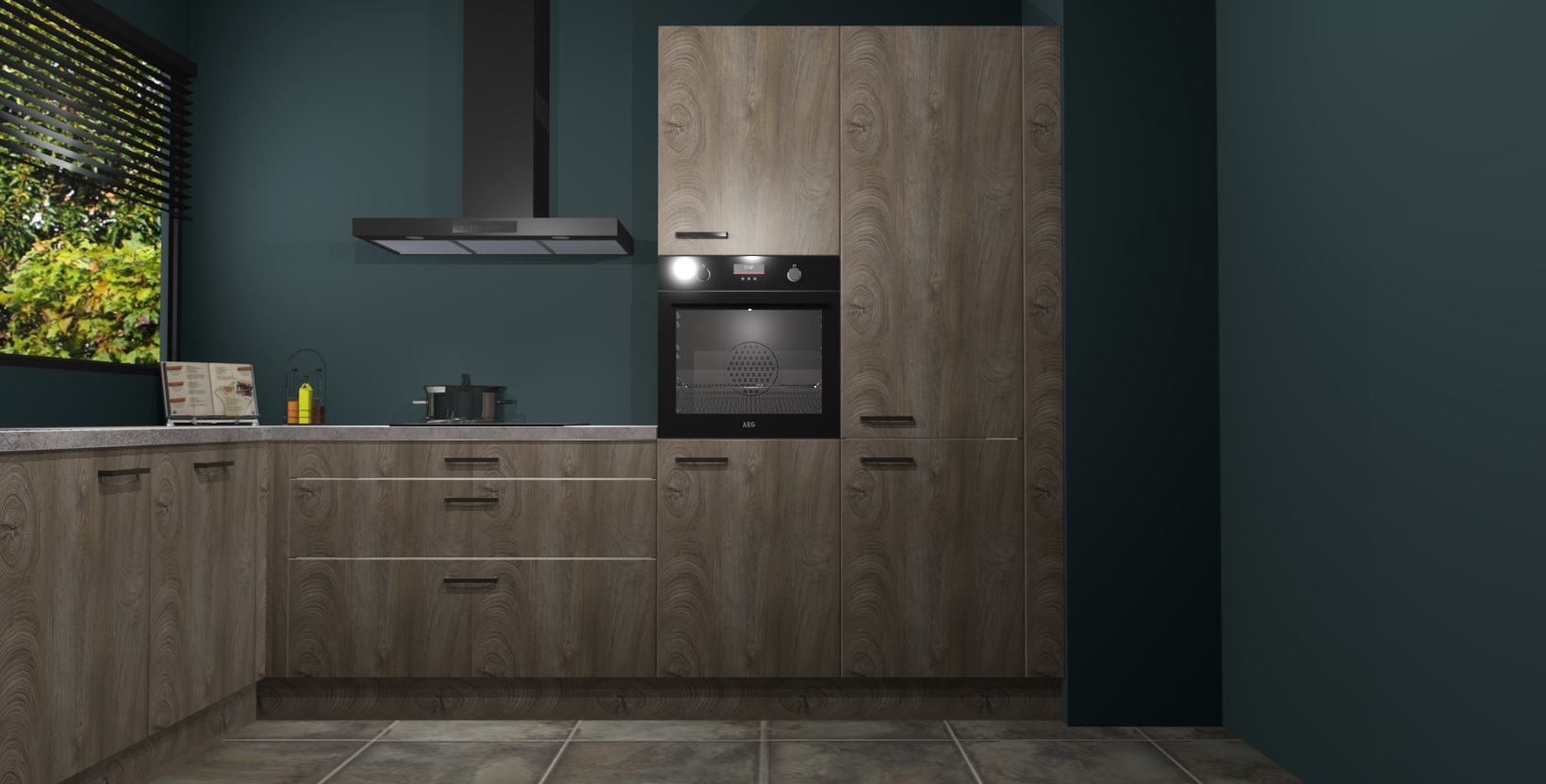 Met een modern, tijdloos design en ruime opslagruimte, zult u zich in no-time thuis voelen in uw nieuwe keuken. Uw leven wordt eenvoudiger met de soft-close deuren die voor het ultieme stille comfort zorgen - geen geluid dat u stoort terwijl u kookt. Ook is de keuken voorzien van 5 ingebouwde apparaten: een oven, inductie kookplaat, afzuigkap, vaatwasser en koelkast. Deze kunnen gemakkelijk na bestelling worden bijgewerkt naar AEG - waardoor uw luxe ervaring compleet is.