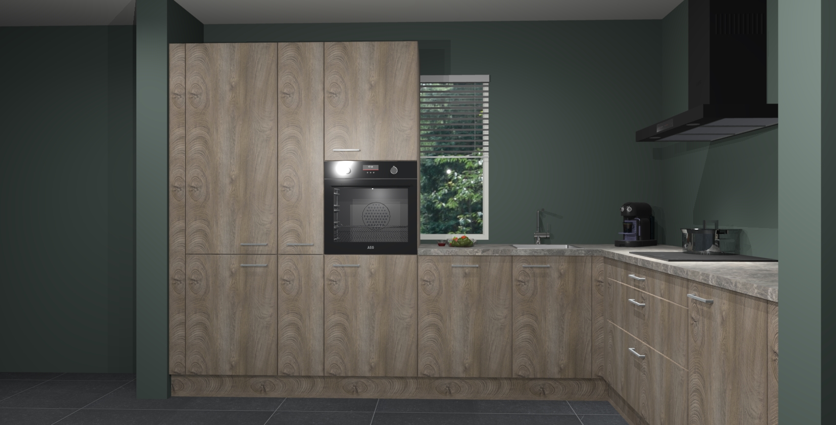 Met een modern, tijdloos design en ruime opslagruimte, zult u zich in no-time thuis voelen in uw nieuwe keuken. Uw leven wordt eenvoudiger met de soft-close deuren die voor het ultieme stille comfort zorgen - geen geluid dat u stoort terwijl u kookt. Ook is de keuken voorzien van 5 ingebouwde apparaten: een oven, inductie kookplaat, afzuigkap, vaatwasser en koelkast. Deze kunnen gemakkelijk na bestelling worden bijgewerkt naar AEG - waardoor uw luxe ervaring compleet is.