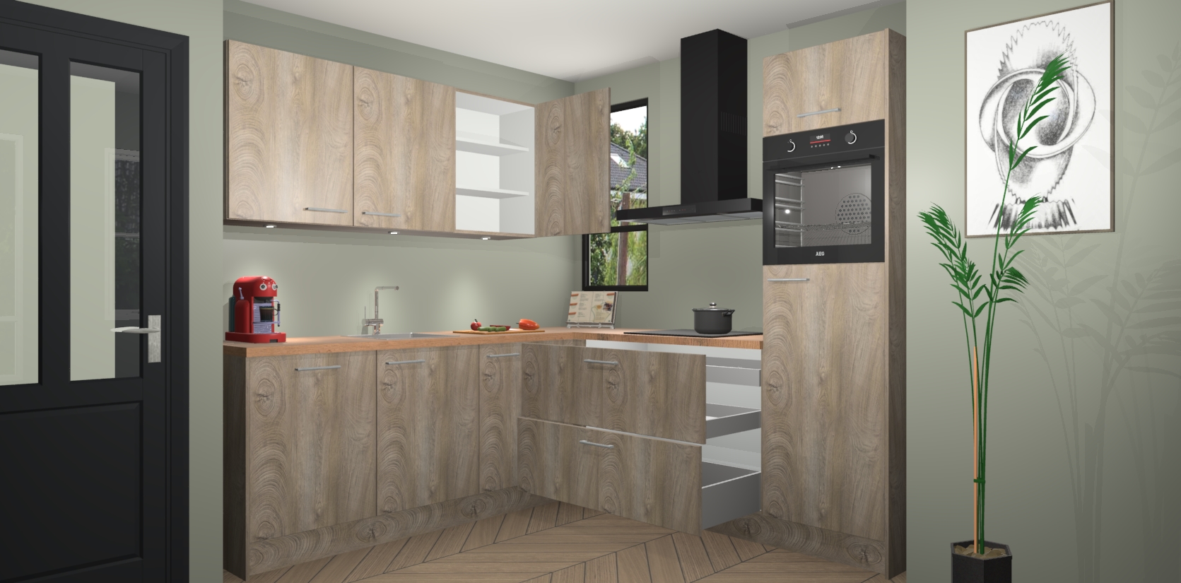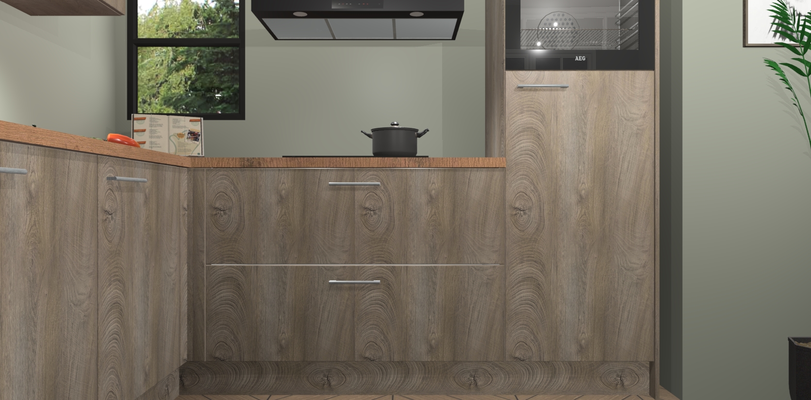 Inclusief plinten, stelpoten en werkblad