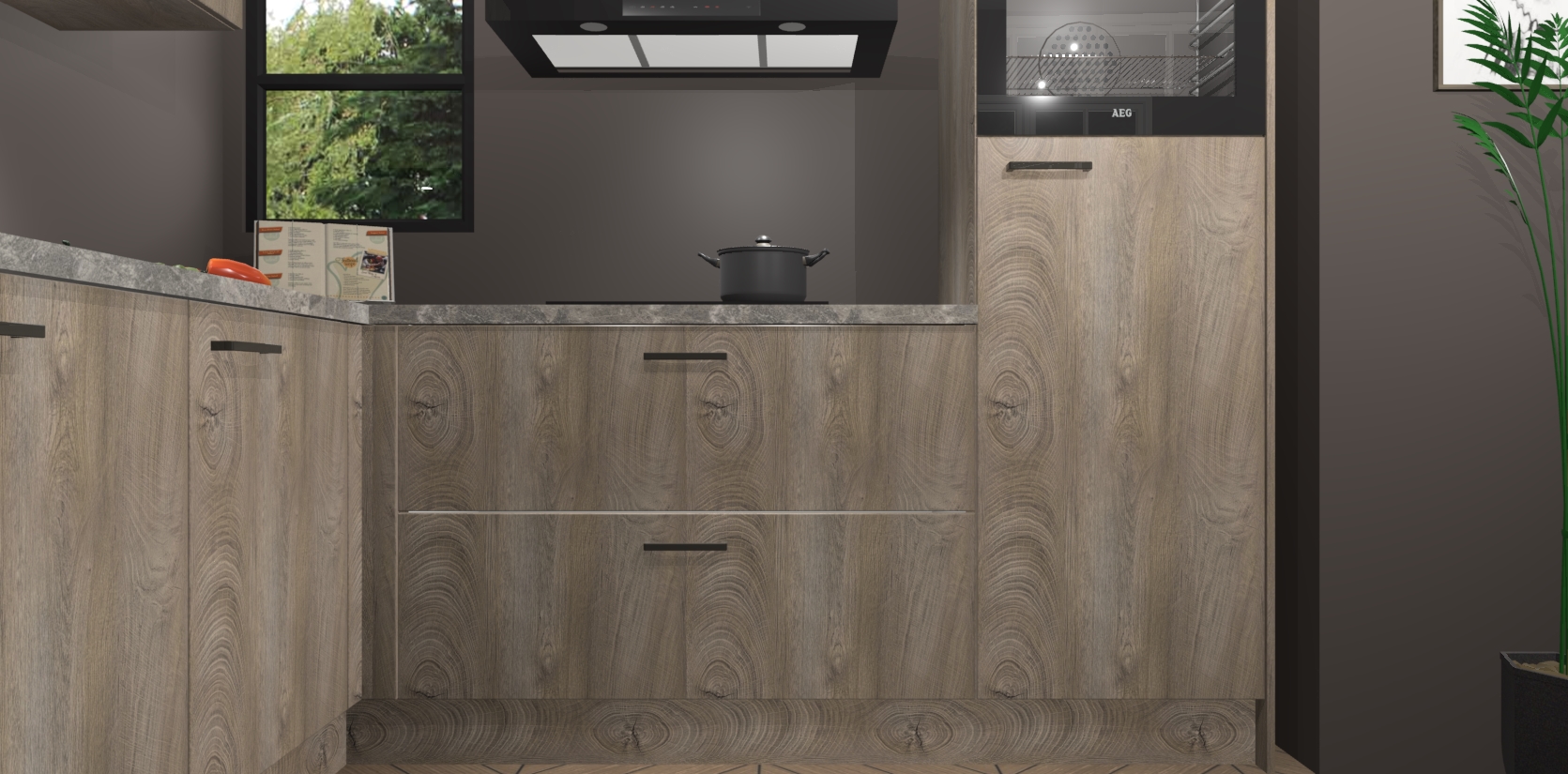 Inclusief plinten, stelpoten en werkblad