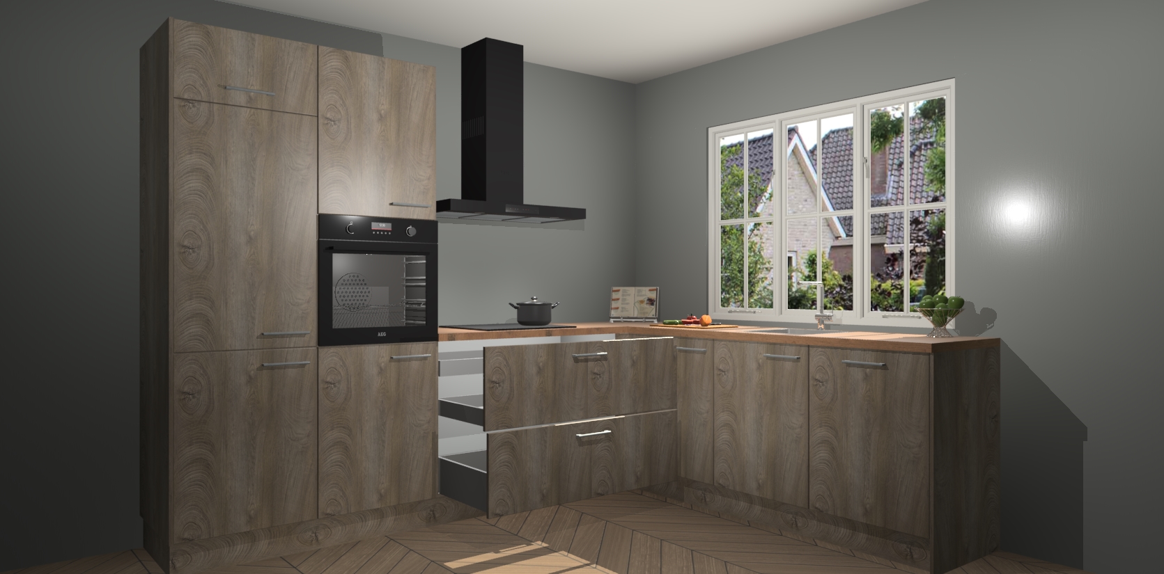 Heeft u genoeg van dezelfde keukenontwerpen die de markt overspoelen? Dan is de Cantaro Eiken keuken Kazan de juiste keuze voor u! Deze prachtige hoekkeuken heeft een modern en tijdloos design dat een elegant tintje geeft aan uw ruimte.