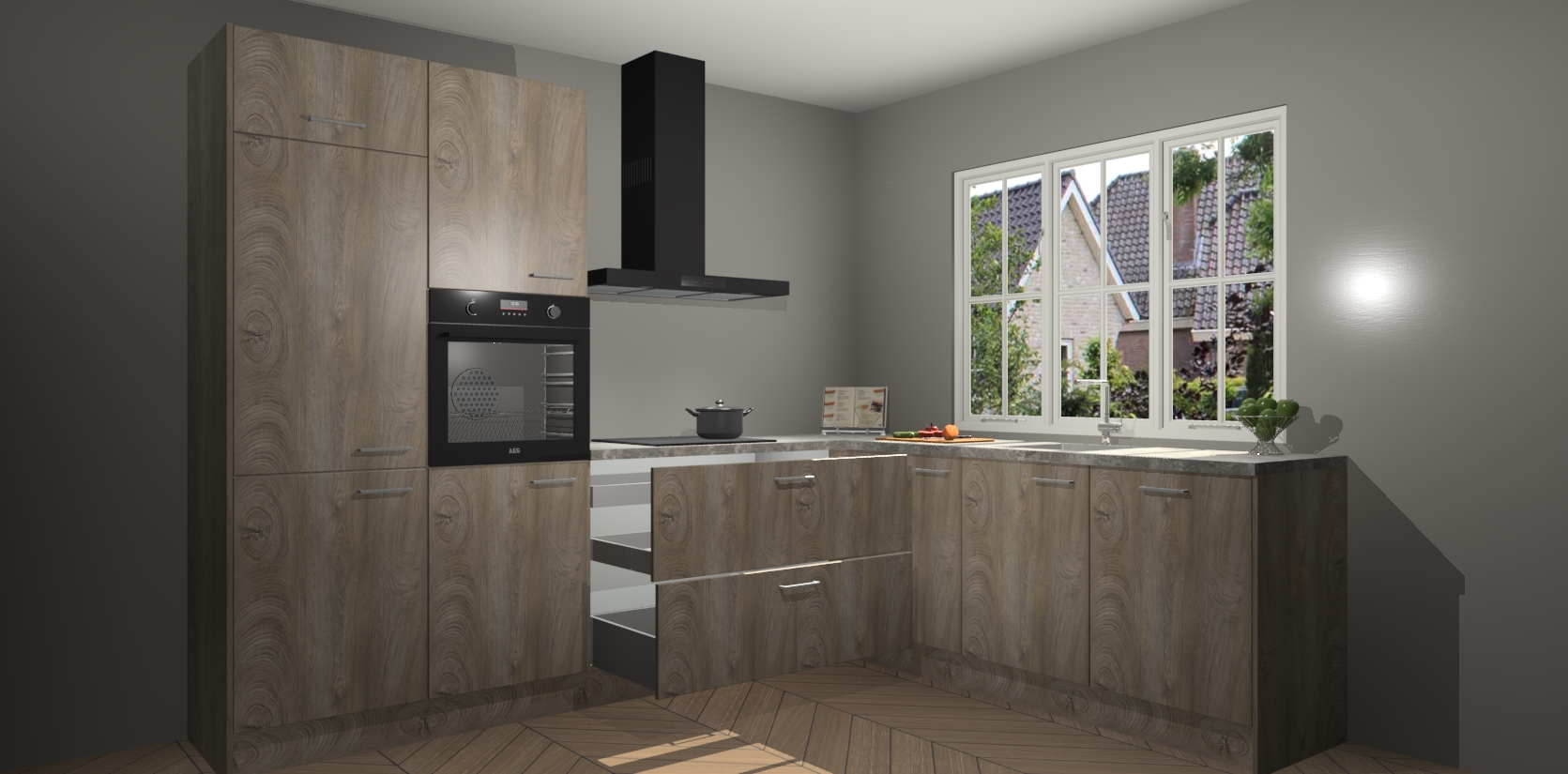 Heeft u genoeg van dezelfde keukenontwerpen die de markt overspoelen? Dan is de Cantaro Eiken keuken Kazan de juiste keuze voor u! Deze prachtige hoekkeuken heeft een modern en tijdloos design dat een elegant tintje geeft aan uw ruimte.