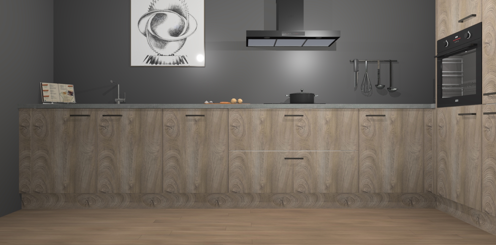 Welkom bij de Cantaro Eiken keuken Khao Lak. Deze prachtige keuken zal de komende jaren het middelpunt van de belangstelling in uw huis zijn. Uitgerust met vijf inbouwapparaten komt u nooit kookgereedschap tekort. Bovendien geeft de warme houtlook elke ruimte een uitnodigende en tijdloze uitstraling.