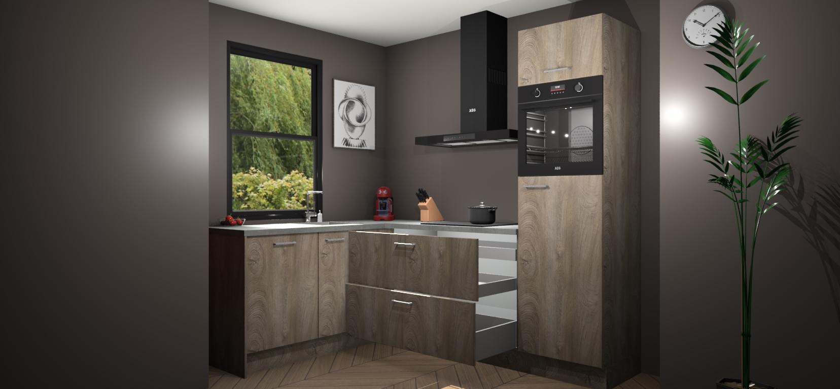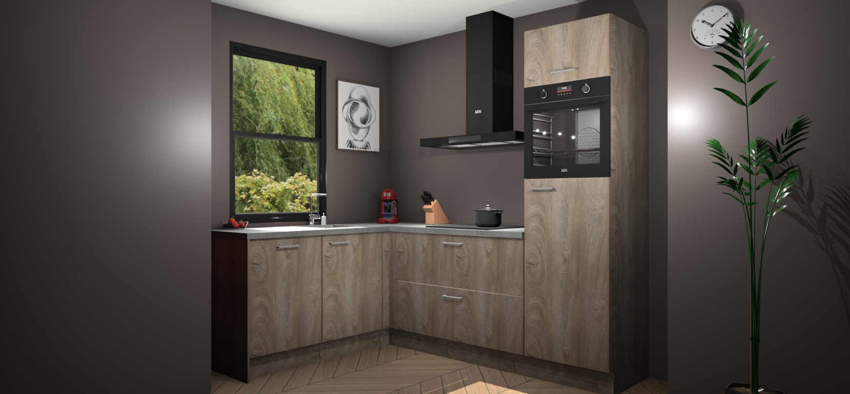 Deze prachtige hoekkeuken heeft alle benodigdheden om uw droomkook- en eetruimte compleet te maken. De Cantaro Eiken kasten bieden een echo van raffinement, terwijl de 5 inbouwapparaten genoeg opties bieden voor het bereiden van heerlijke maaltijden. De oven, inductiekookplaat, afzuigkap, vaatwasser en koelkast zorgen ervoor dat u tijd in de keuken zo efficiënt mogelijk verloopt, terwijl ze ook dat extra vleugje luxe bieden.