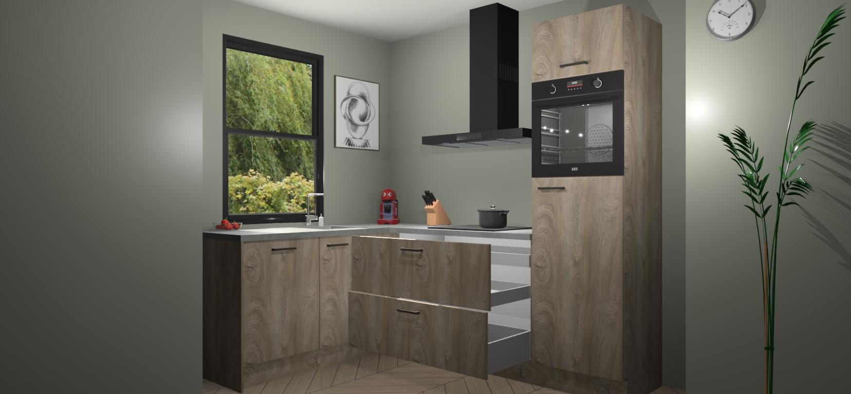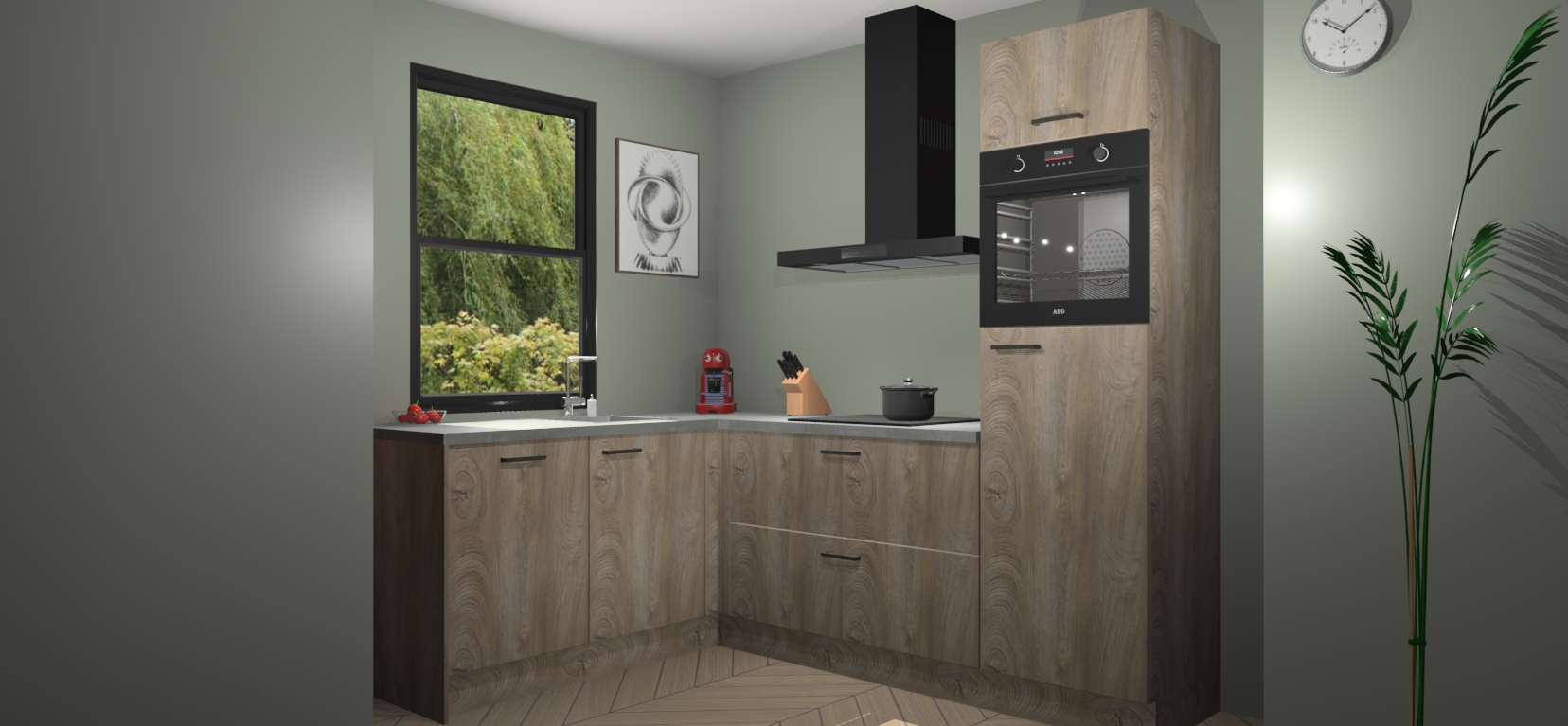 Deze prachtige hoekkeuken heeft alle benodigdheden om uw droomkook- en eetruimte compleet te maken. De Cantaro Eiken kasten bieden een echo van raffinement, terwijl de 5 inbouwapparaten genoeg opties bieden voor het bereiden van heerlijke maaltijden. De oven, inductiekookplaat, afzuigkap, vaatwasser en koelkast zorgen ervoor dat u tijd in de keuken zo efficiënt mogelijk verloopt, terwijl ze ook dat extra vleugje luxe bieden.