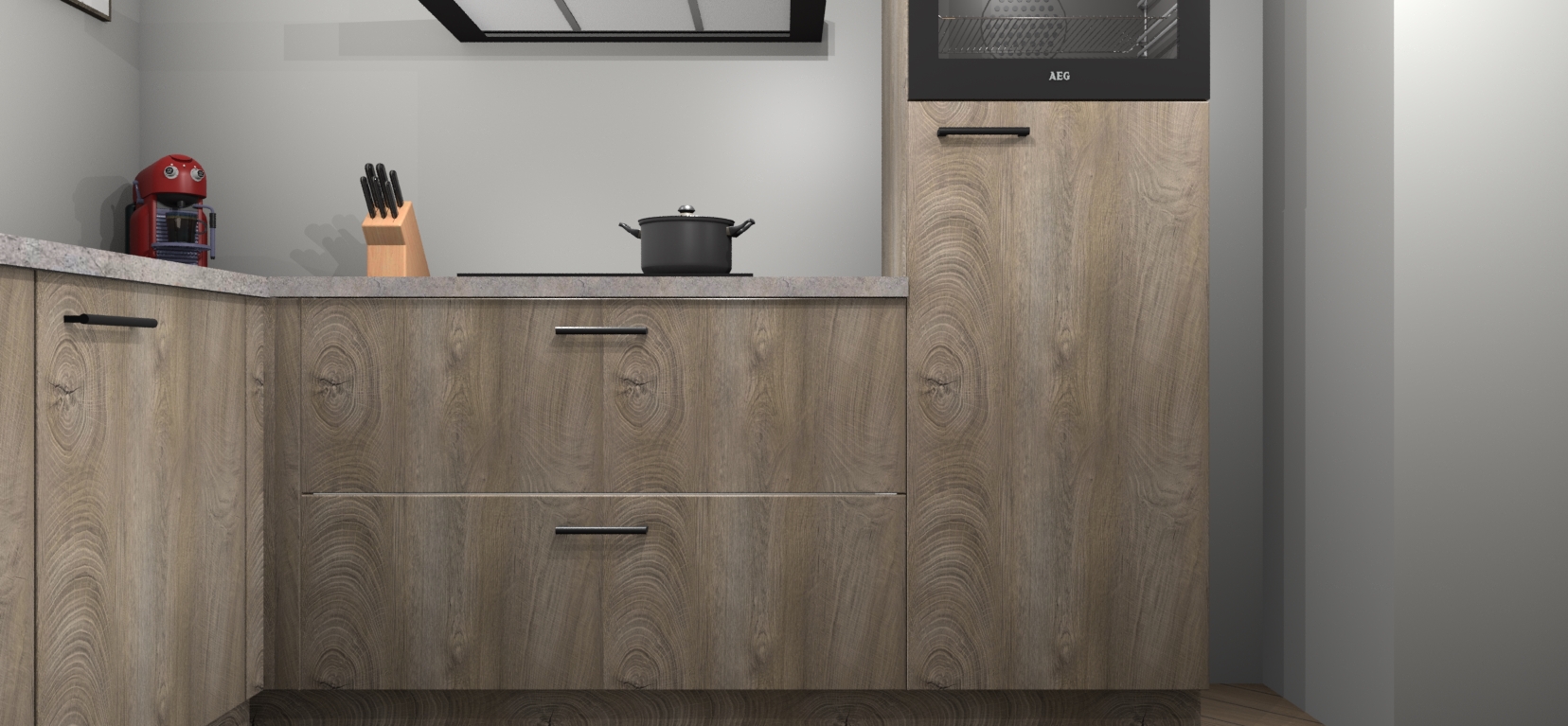 Inclusief plinten, stelpoten en werkblad