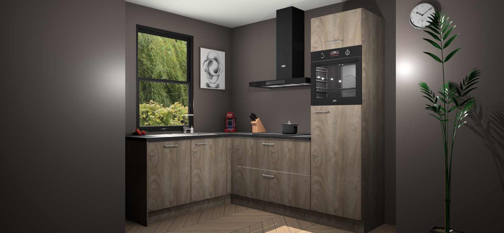 Deze prachtige hoekkeuken heeft alle benodigdheden om uw droomkook- en eetruimte compleet te maken. De Cantaro Eiken kasten bieden een echo van raffinement, terwijl de 5 inbouwapparaten genoeg opties bieden voor het bereiden van heerlijke maaltijden. De oven, inductiekookplaat, afzuigkap, vaatwasser en koelkast zorgen ervoor dat u tijd in de keuken zo efficiënt mogelijk verloopt, terwijl ze ook dat extra vleugje luxe bieden.