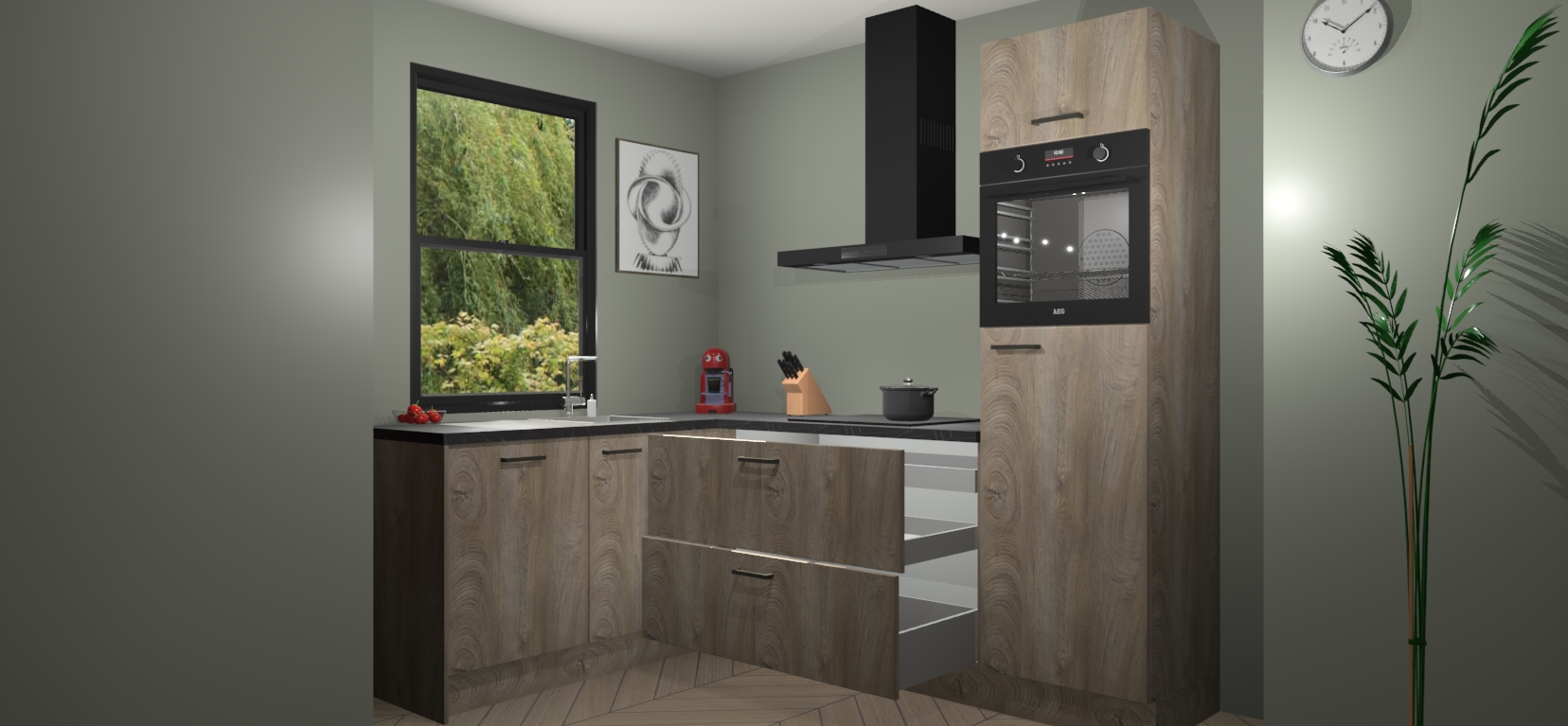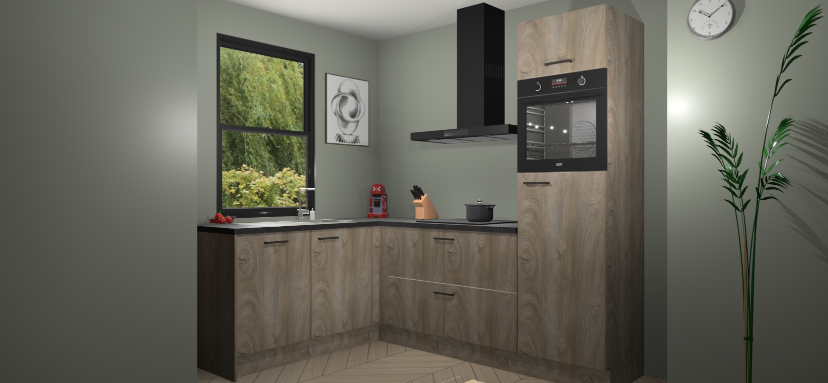 Deze prachtige hoekkeuken heeft alle benodigdheden om uw droomkook- en eetruimte compleet te maken. De Cantaro Eiken kasten bieden een echo van raffinement, terwijl de 5 inbouwapparaten genoeg opties bieden voor het bereiden van heerlijke maaltijden. De oven, inductiekookplaat, afzuigkap, vaatwasser en koelkast zorgen ervoor dat u tijd in de keuken zo efficiënt mogelijk verloopt, terwijl ze ook dat extra vleugje luxe bieden.