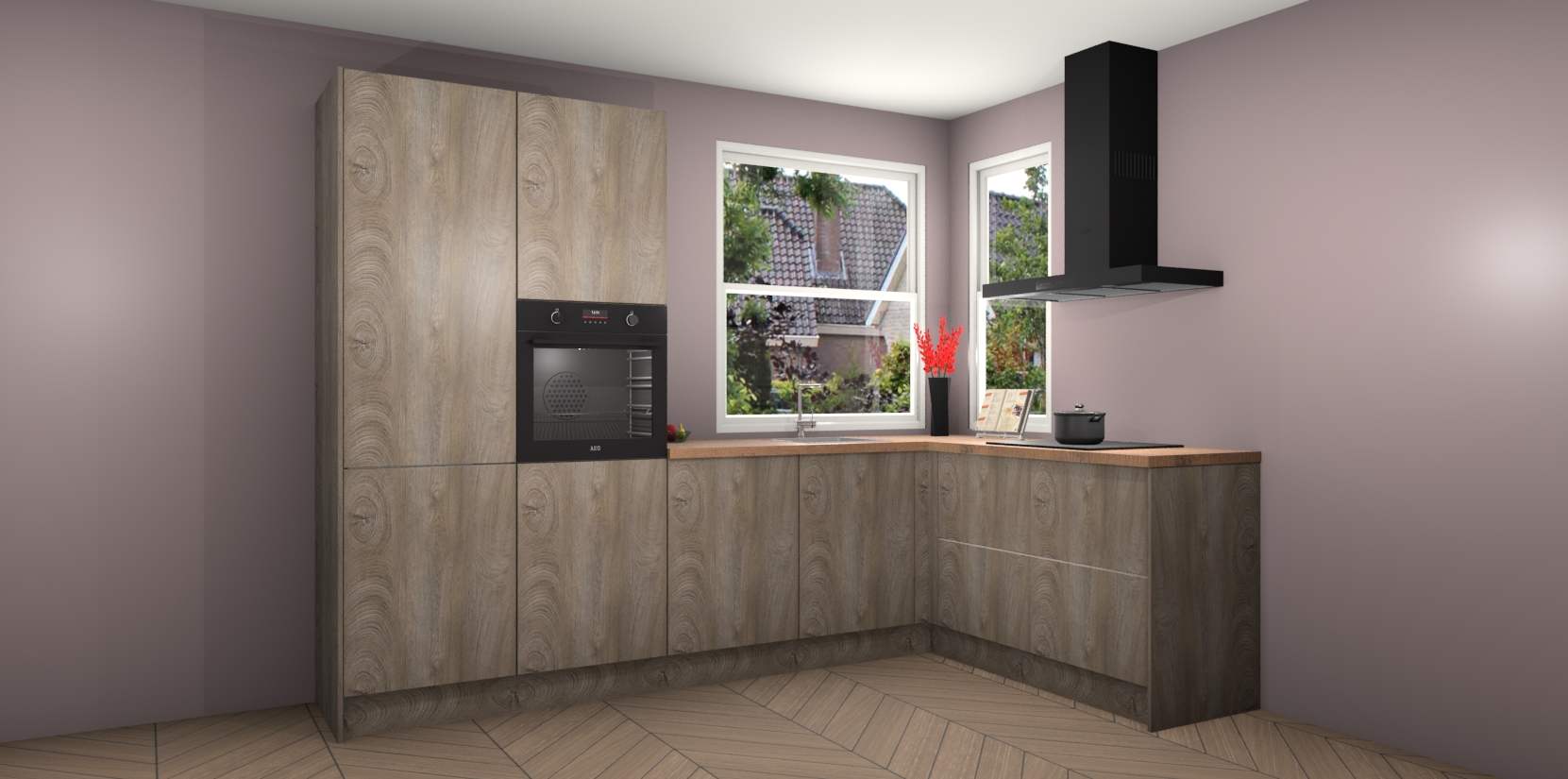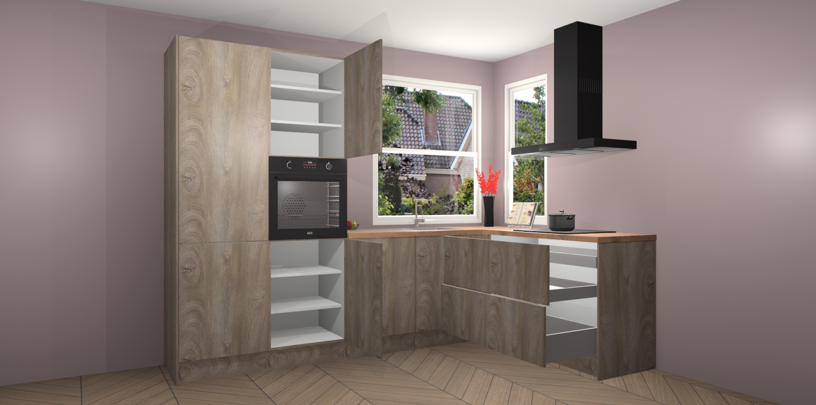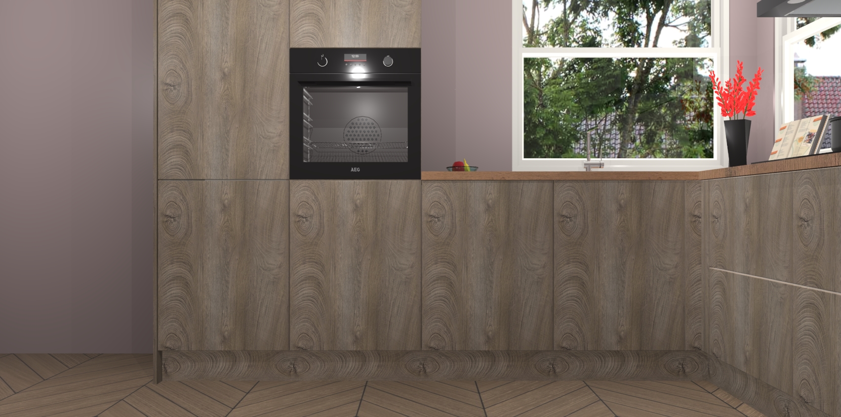 Elke Cantaro Eiken keuken Kotor wordt compleet geleverd met vijf inbouwapparaten, waaronder een oven, inductiekookplaat, afzuigkap, vaatwasser en koelkast. Sterker nog - indien gewenst kunt u deze apparaten na bestelling eenvoudig upgraden naar AEG! Extra functies zijn onder andere soft close deuren voor extra gemak, en elke kast wordt voor gemonteerd geleverd zodat u sneller van uw nieuwe keuken kunt genieten.