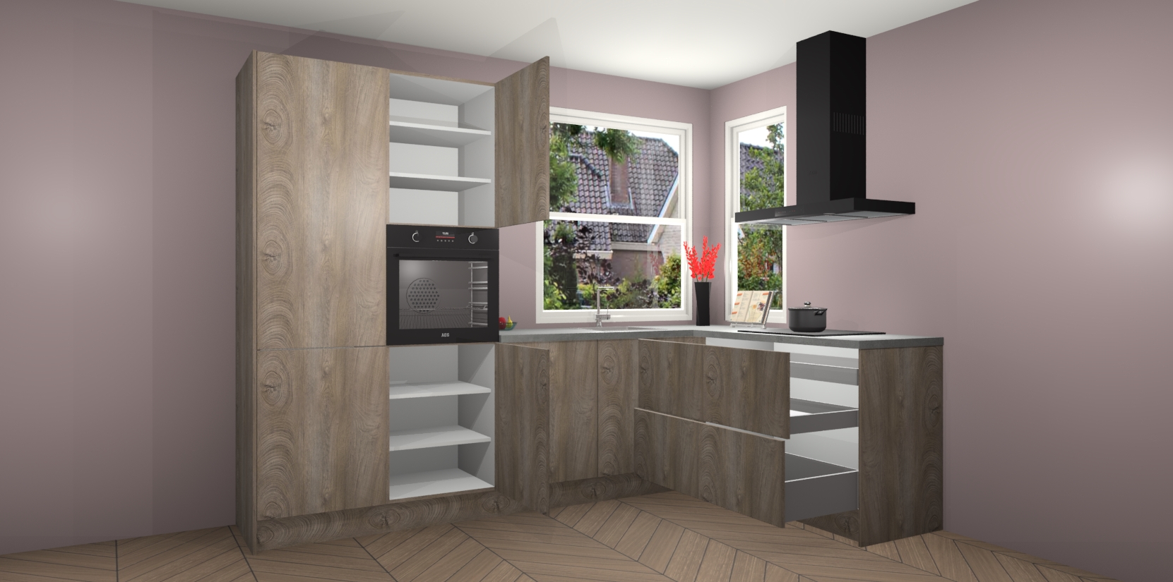 Het is tijd om halsoverkop verliefd te worden op uw droomkeuken, en de Cantaro Eiken keuken Kotor is precies wat u nodig heeft! Met een moderne, tijdloze constructie en een mix van prachtig design zal deze luxe hoekkeuken zeker opvallen. Maar laat de schoonheid u niet afleiden van de indrukwekkende functies - want onder dit alles schuilt een onovertroffen hoeveelheid lekkers!