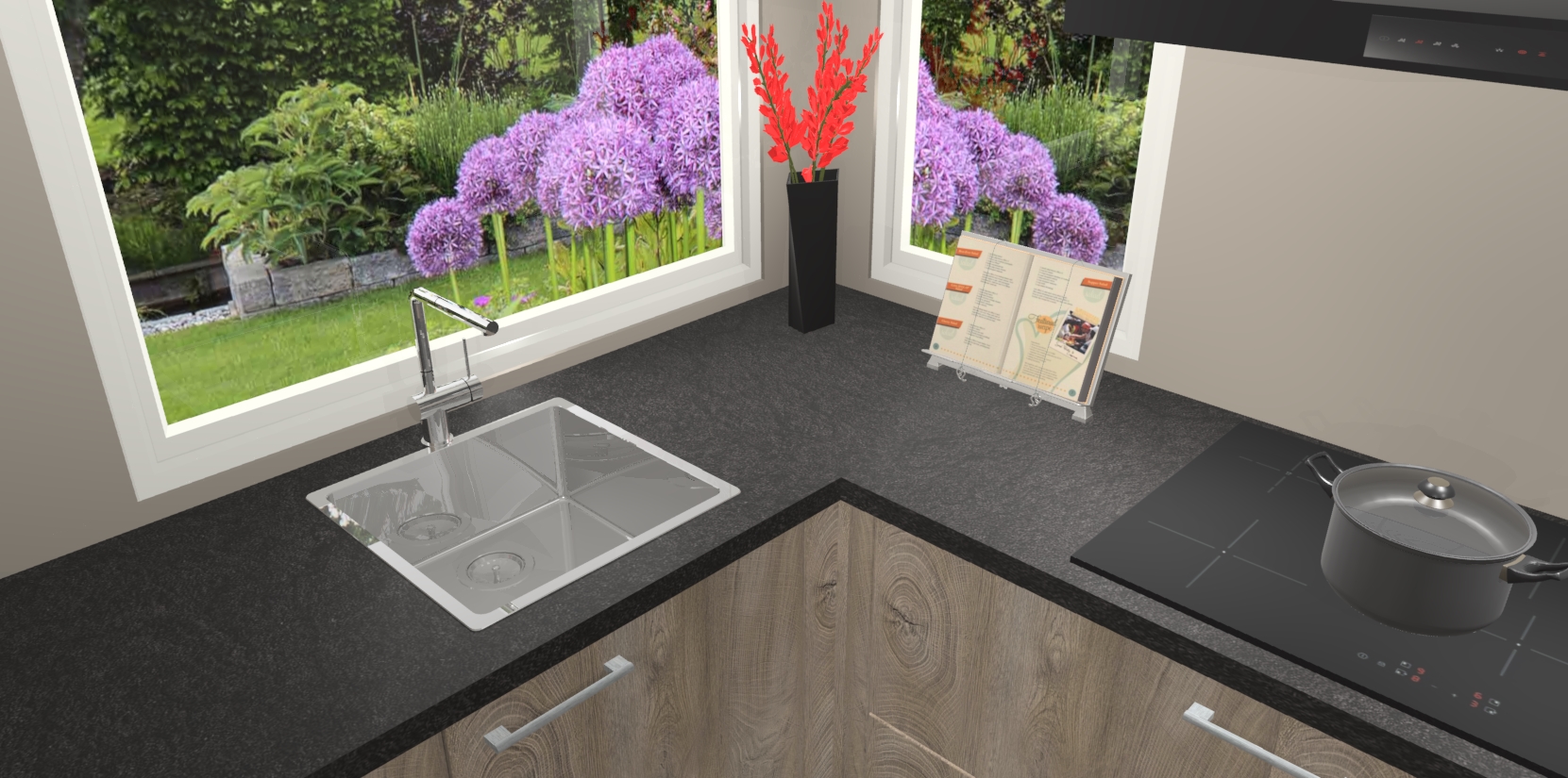 - Bij een hoekwerkblad zijn de hoeken in gevreesd en op maat gemaakt