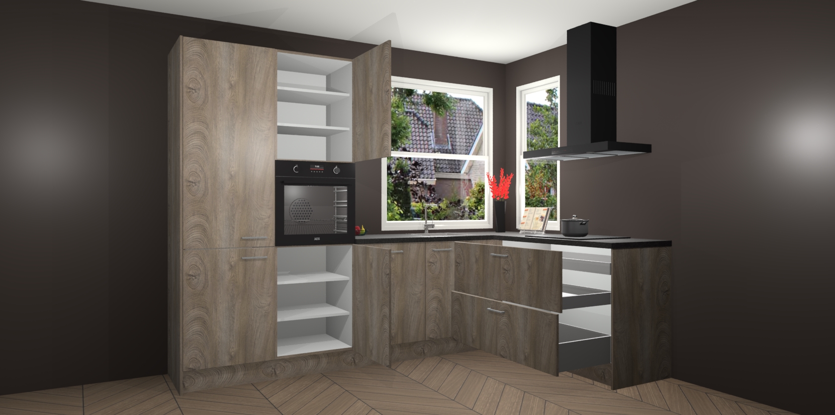 Het is tijd om halsoverkop verliefd te worden op uw droomkeuken, en de Cantaro Eiken keuken Kotor is precies wat u nodig heeft! Met een moderne, tijdloze constructie en een mix van prachtig design zal deze luxe hoekkeuken zeker opvallen. Maar laat de schoonheid u niet afleiden van de indrukwekkende functies - want onder dit alles schuilt een onovertroffen hoeveelheid lekkers!