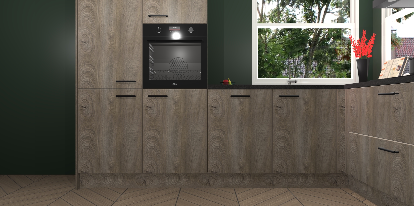 Elke Cantaro Eiken keuken Kotor wordt compleet geleverd met vijf inbouwapparaten, waaronder een oven, inductiekookplaat, afzuigkap, vaatwasser en koelkast. Sterker nog - indien gewenst kunt u deze apparaten na bestelling eenvoudig upgraden naar AEG! Extra functies zijn onder andere soft close deuren voor extra gemak, en elke kast wordt voor gemonteerd geleverd zodat u sneller van uw nieuwe keuken kunt genieten.