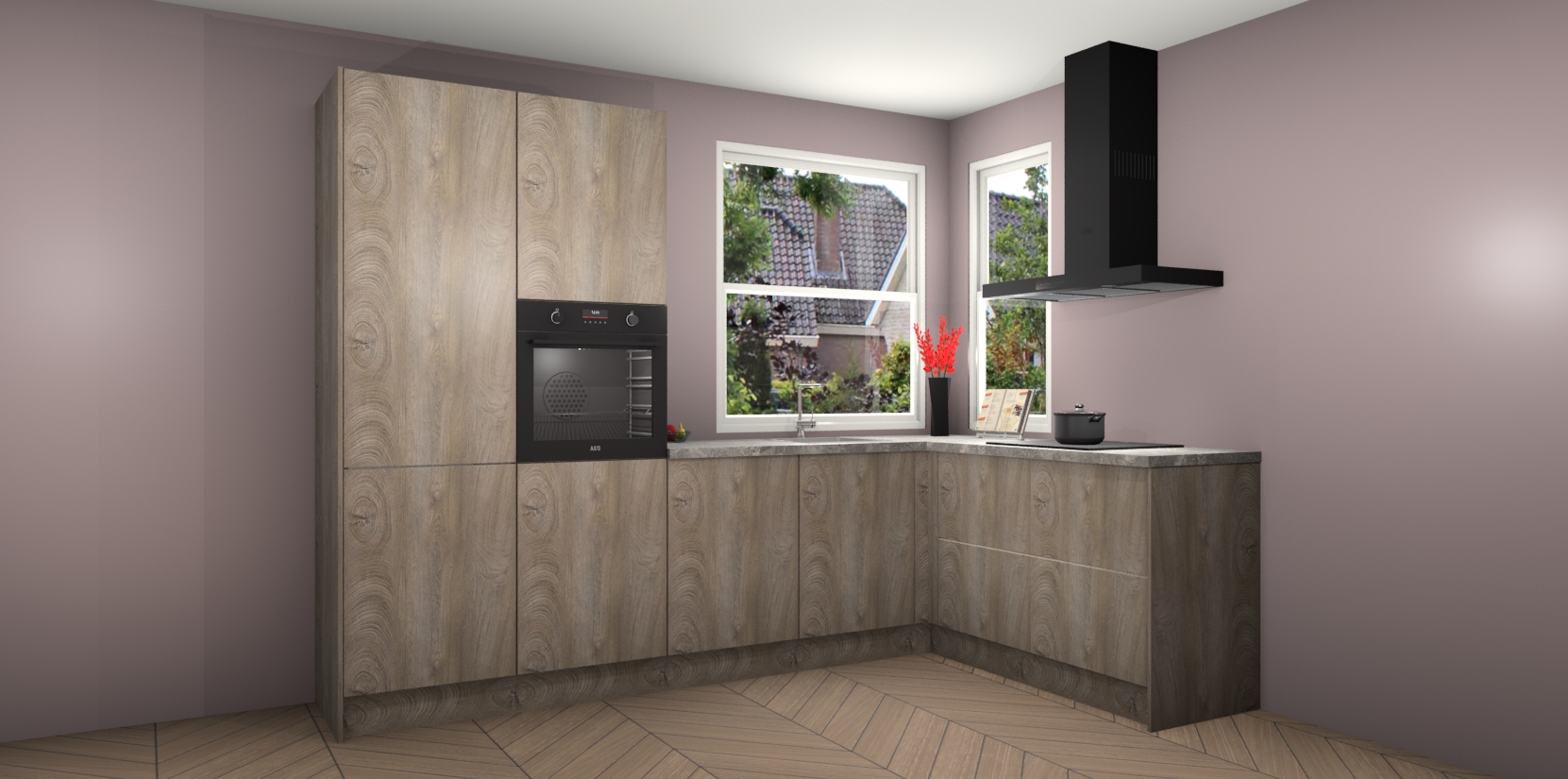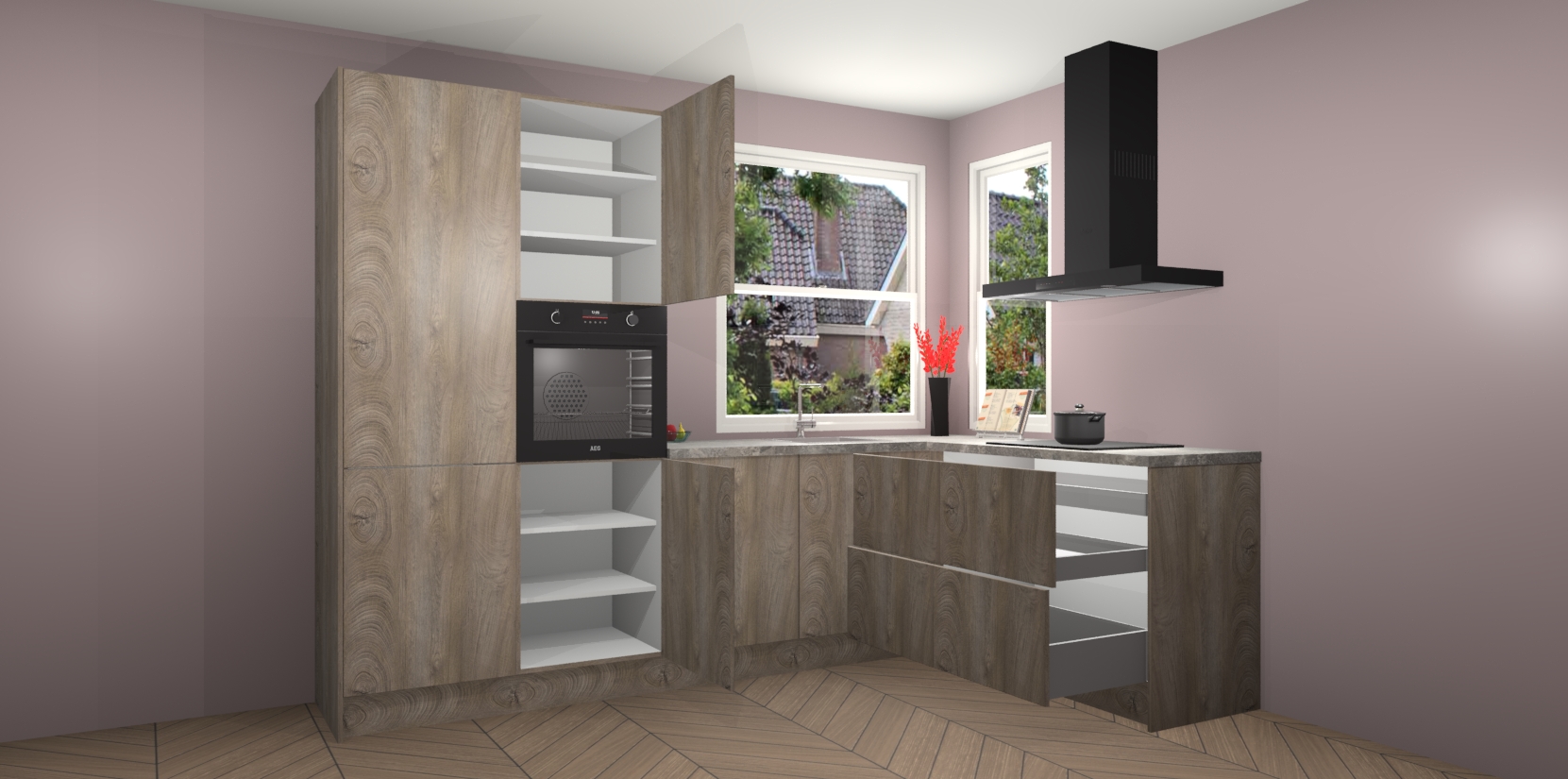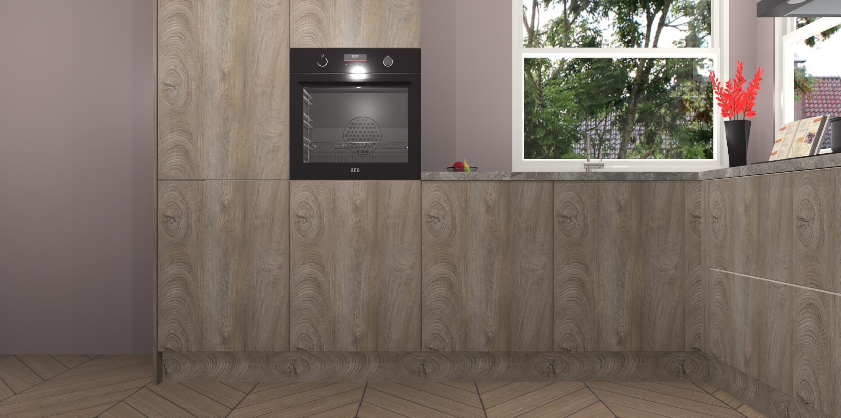 Elke Cantaro Eiken keuken Kotor wordt compleet geleverd met vijf inbouwapparaten, waaronder een oven, inductiekookplaat, afzuigkap, vaatwasser en koelkast. Sterker nog - indien gewenst kunt u deze apparaten na bestelling eenvoudig upgraden naar AEG! Extra functies zijn onder andere soft close deuren voor extra gemak, en elke kast wordt voor gemonteerd geleverd zodat u sneller van uw nieuwe keuken kunt genieten.