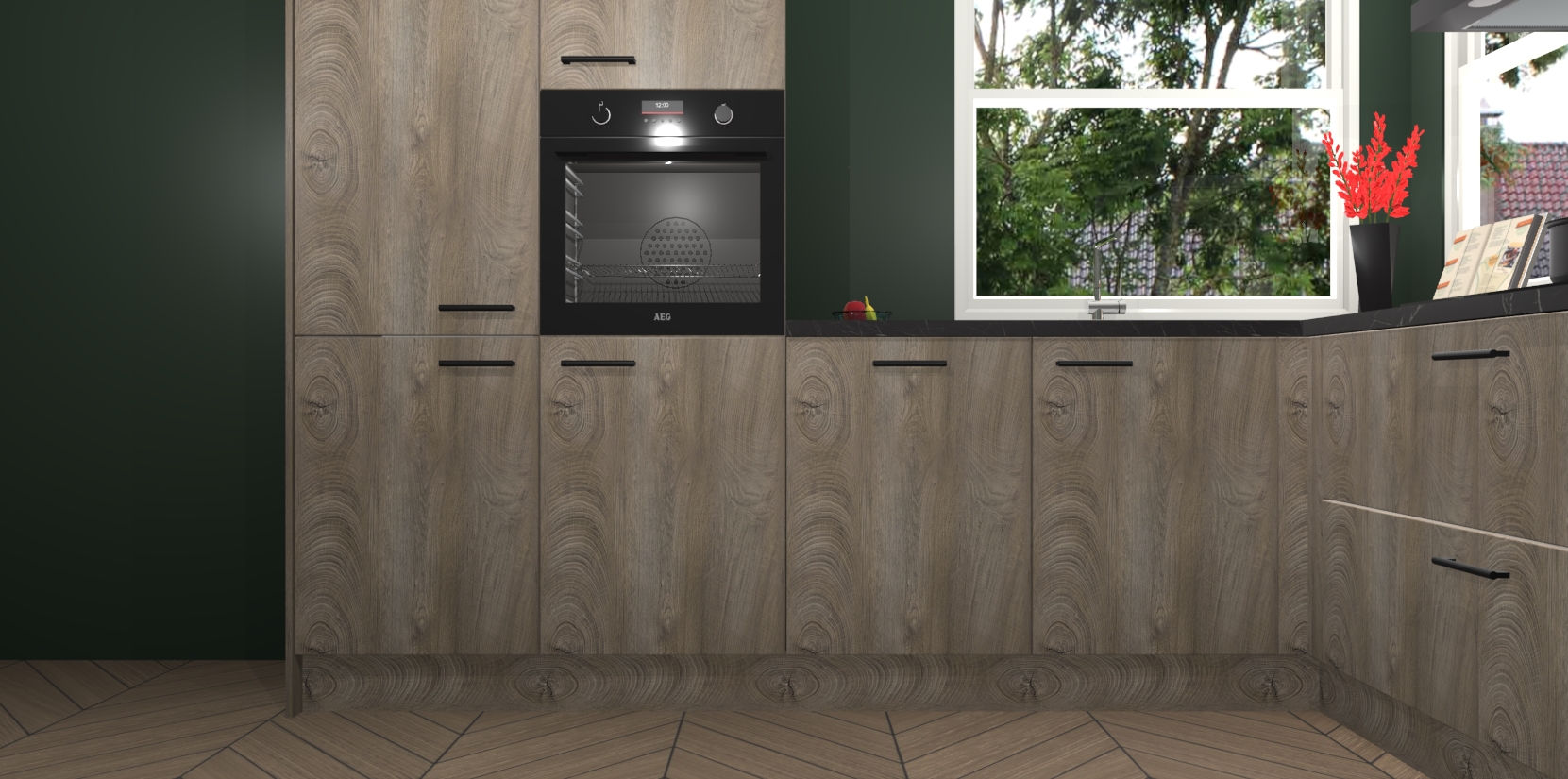 Elke Cantaro Eiken keuken Kotor wordt compleet geleverd met vijf inbouwapparaten, waaronder een oven, inductiekookplaat, afzuigkap, vaatwasser en koelkast. Sterker nog - indien gewenst kunt u deze apparaten na bestelling eenvoudig upgraden naar AEG! Extra functies zijn onder andere soft close deuren voor extra gemak, en elke kast wordt voor gemonteerd geleverd zodat u sneller van uw nieuwe keuken kunt genieten.