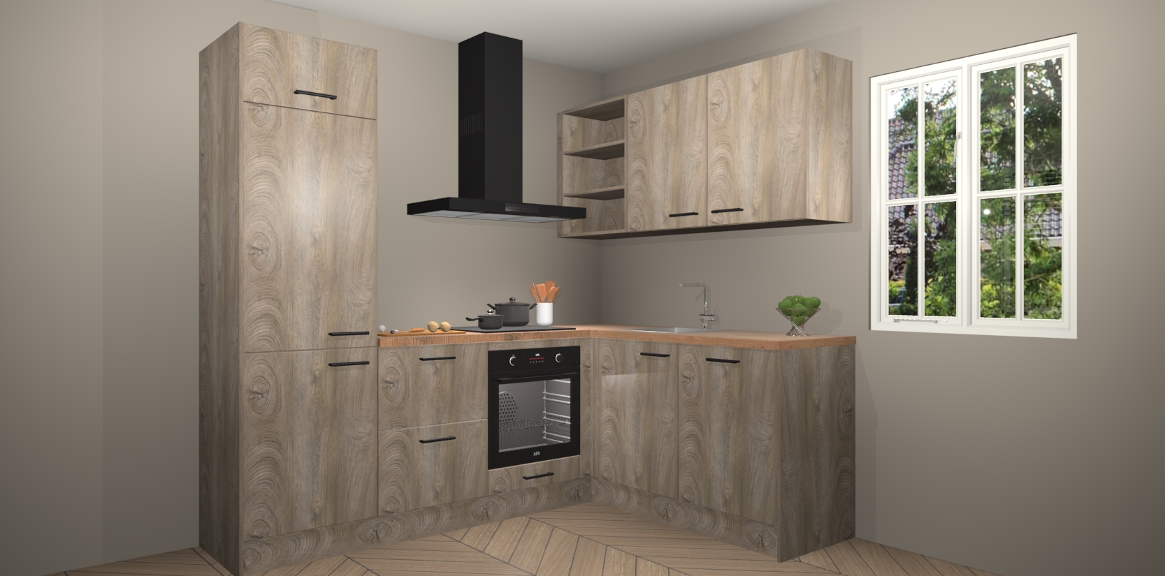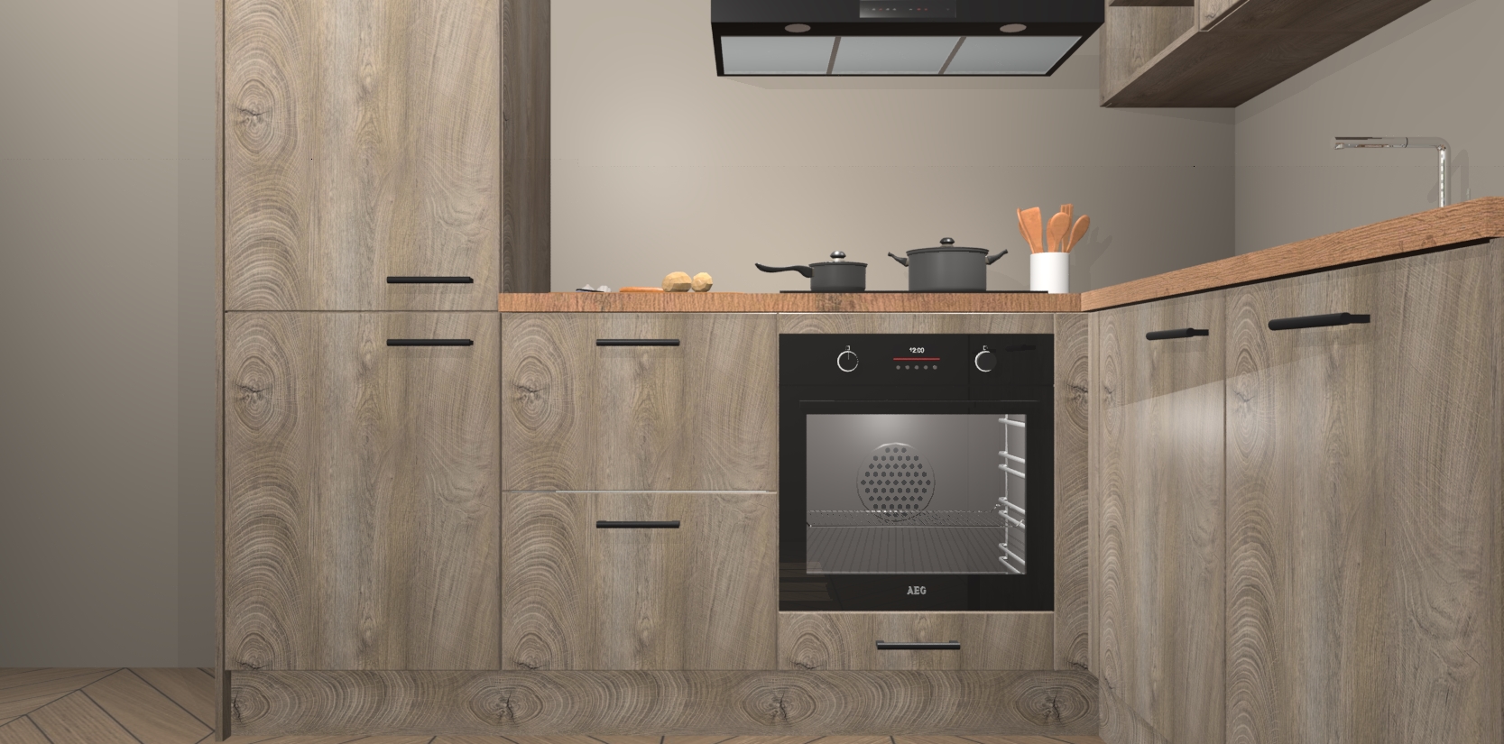 Dit model biedt u voldoende opbergruimte en vijf ingebouwde apparaten: een oven, inductiekookplaat, afzuigkap, vaatwasser en koelkast. Deze apparaten kunnen gemakkelijk worden geüpgrade naar AEG nadat u besteld heeft. De verschillende laden en kastjes bevatten softclose-deuren waardoor ze gezellig dichtvallen met een geruststellend helemaal geruisloos geluid. En dat is nog niet alles! We garanderen ook dat de prijs altijd laag blijft - dus haal nu uw Cantaro Eiken keuken Krakau terwijl het kan.