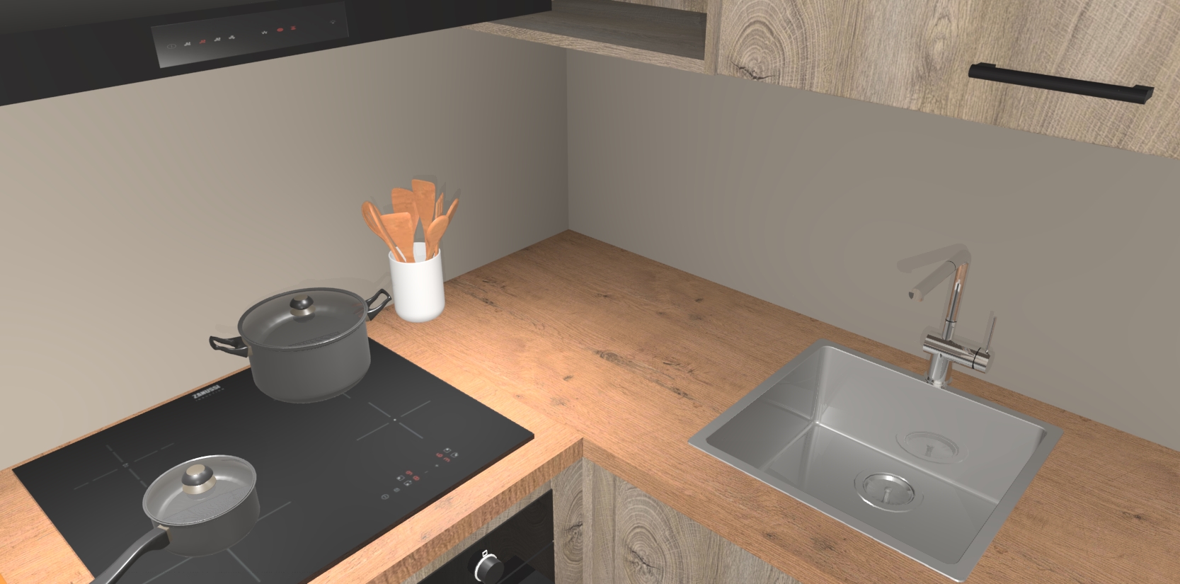 - Uitsparing van kookplaat, spoelbak en kraan dient u zelf te verzorgen.