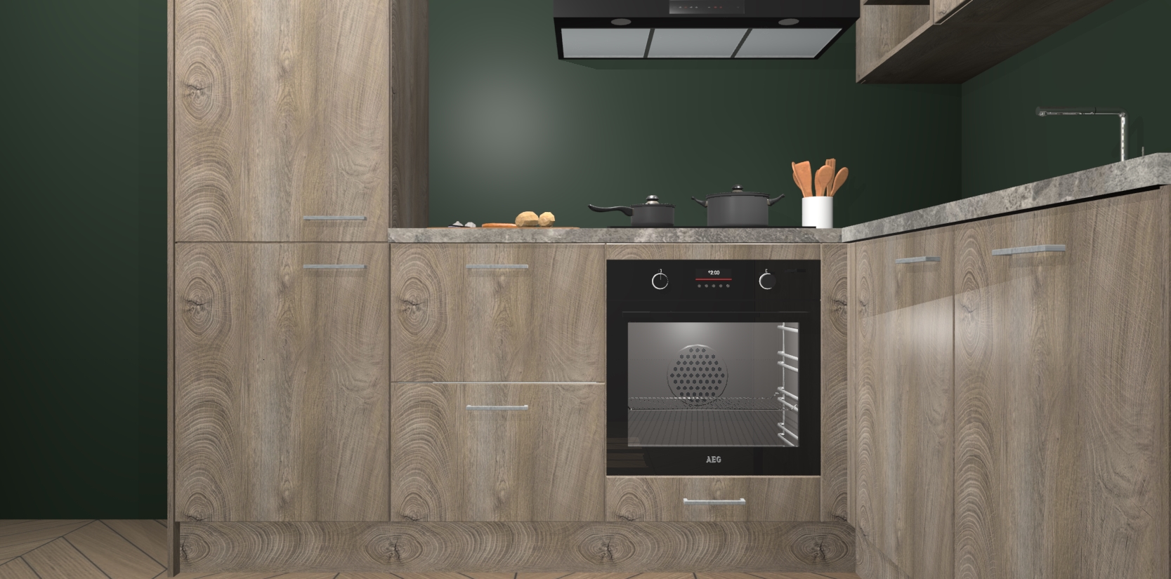 Dit model biedt u voldoende opbergruimte en vijf ingebouwde apparaten: een oven, inductiekookplaat, afzuigkap, vaatwasser en koelkast. Deze apparaten kunnen gemakkelijk worden geüpgrade naar AEG nadat u besteld heeft. De verschillende laden en kastjes bevatten softclose-deuren waardoor ze gezellig dichtvallen met een geruststellend helemaal geruisloos geluid. En dat is nog niet alles! We garanderen ook dat de prijs altijd laag blijft - dus haal nu uw Cantaro Eiken keuken Krakau terwijl het kan.