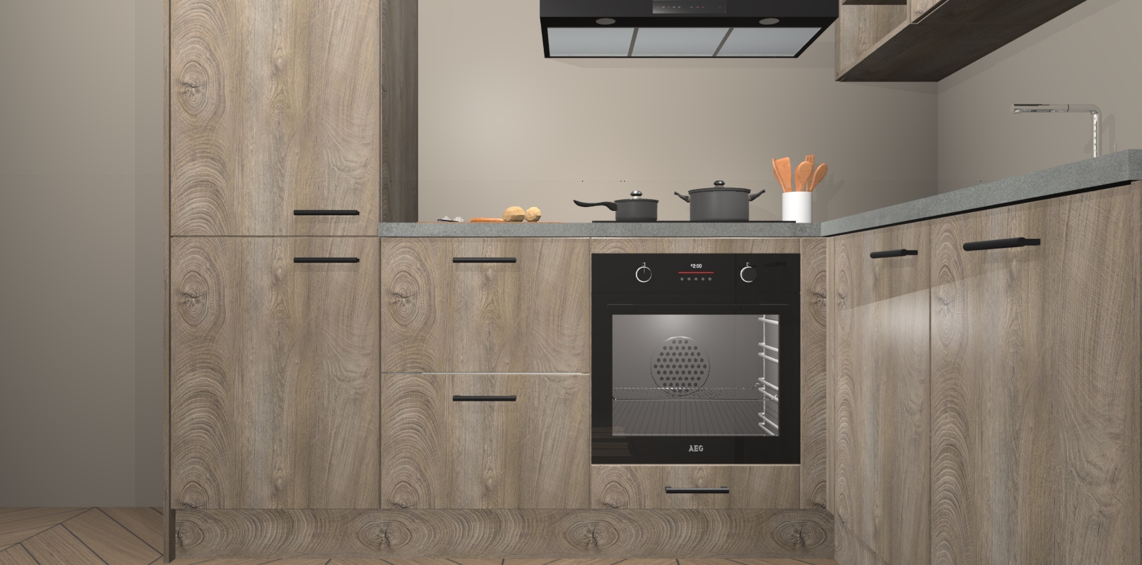 Dit model biedt u voldoende opbergruimte en vijf ingebouwde apparaten: een oven, inductiekookplaat, afzuigkap, vaatwasser en koelkast. Deze apparaten kunnen gemakkelijk worden geüpgrade naar AEG nadat u besteld heeft. De verschillende laden en kastjes bevatten softclose-deuren waardoor ze gezellig dichtvallen met een geruststellend helemaal geruisloos geluid. En dat is nog niet alles! We garanderen ook dat de prijs altijd laag blijft - dus haal nu uw Cantaro Eiken keuken Krakau terwijl het kan.