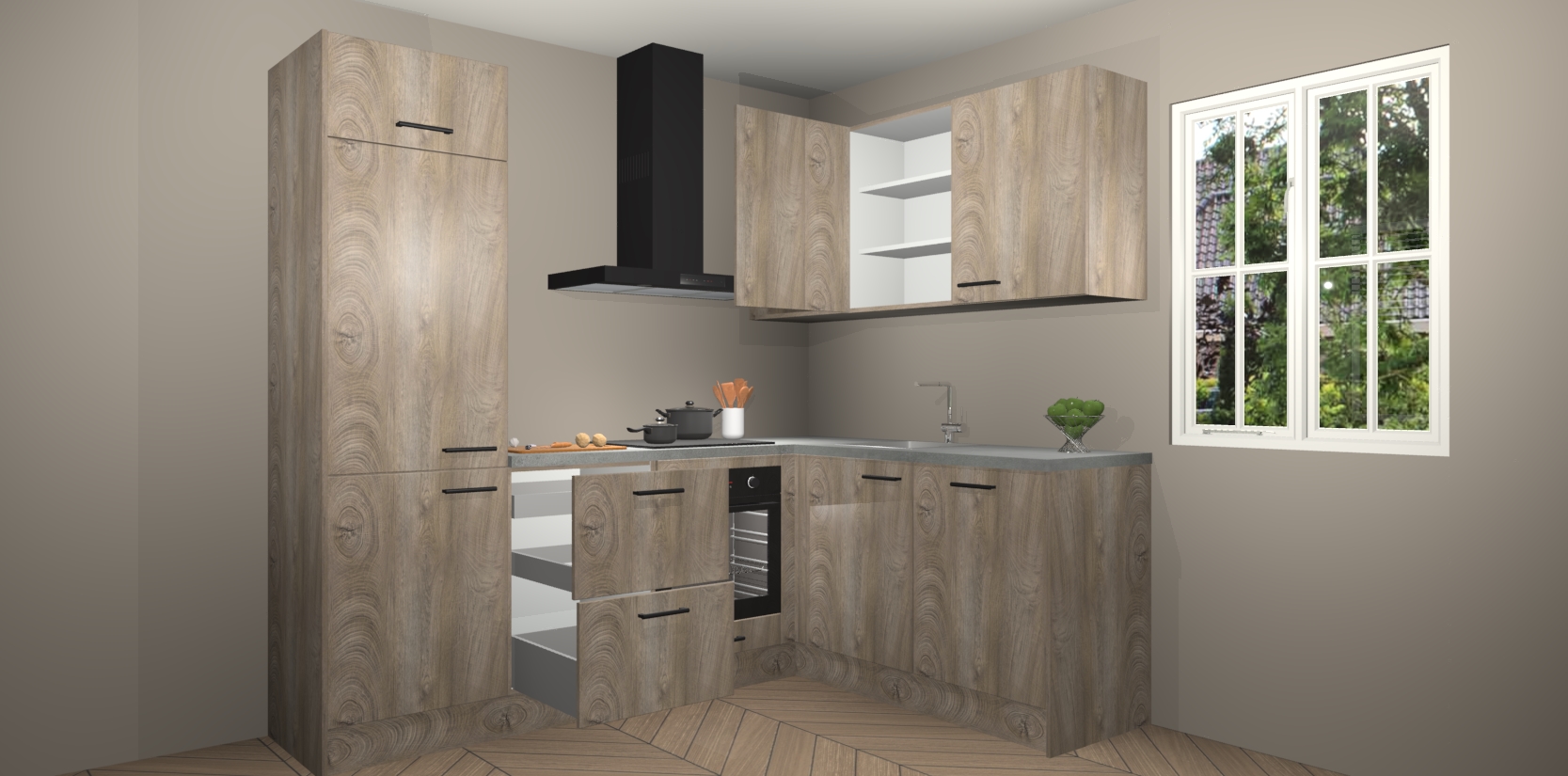 Bestellen was nog nooit zo makkelijk en we leveren met slechts 7 weken; zodra de keuken arriveert staan de kasten voor gemonteerd klaar om er alles aan te doen dat u hem gemakkelijk zelf kunt installeren! Eén ding is zeker: met de Cantaro Eiken keuken Krakau slaagt u erin modischer, modernere keukens uit te rusten die tientallen jaren meegaan! Haal snel uw Cantaro Eiken keuken Krakau - of u nu net begint of al 'levenservaring' hebt in de keukendroomloopbaan - want dit topmodel van onze collectie wilt u absoluut niet missen.