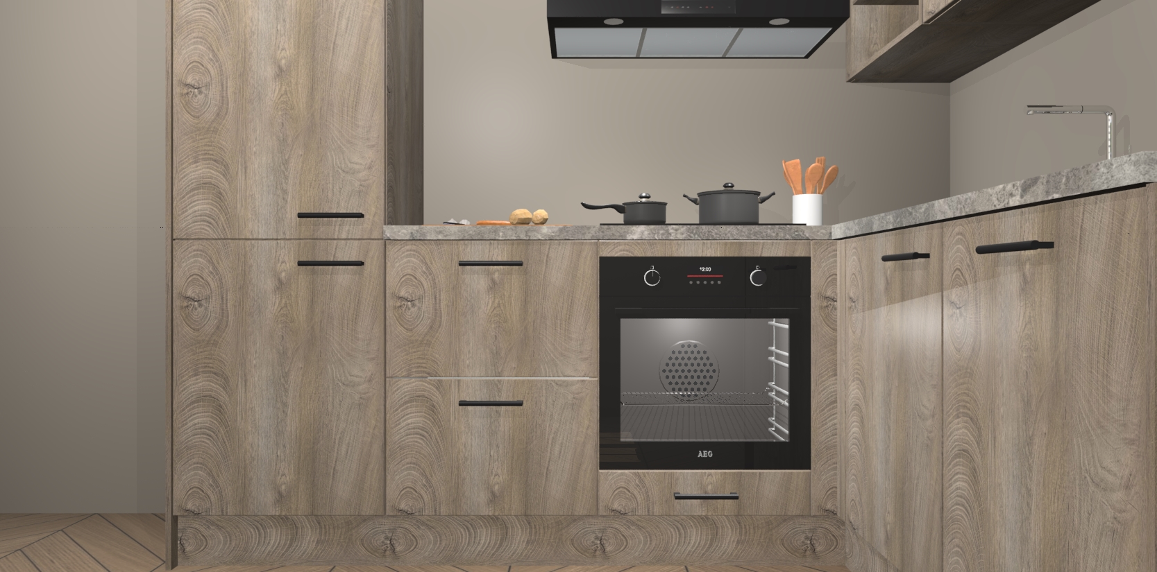 Dit model biedt u voldoende opbergruimte en vijf ingebouwde apparaten: een oven, inductiekookplaat, afzuigkap, vaatwasser en koelkast. Deze apparaten kunnen gemakkelijk worden geüpgrade naar AEG nadat u besteld heeft. De verschillende laden en kastjes bevatten softclose-deuren waardoor ze gezellig dichtvallen met een geruststellend helemaal geruisloos geluid. En dat is nog niet alles! We garanderen ook dat de prijs altijd laag blijft - dus haal nu uw Cantaro Eiken keuken Krakau terwijl het kan.