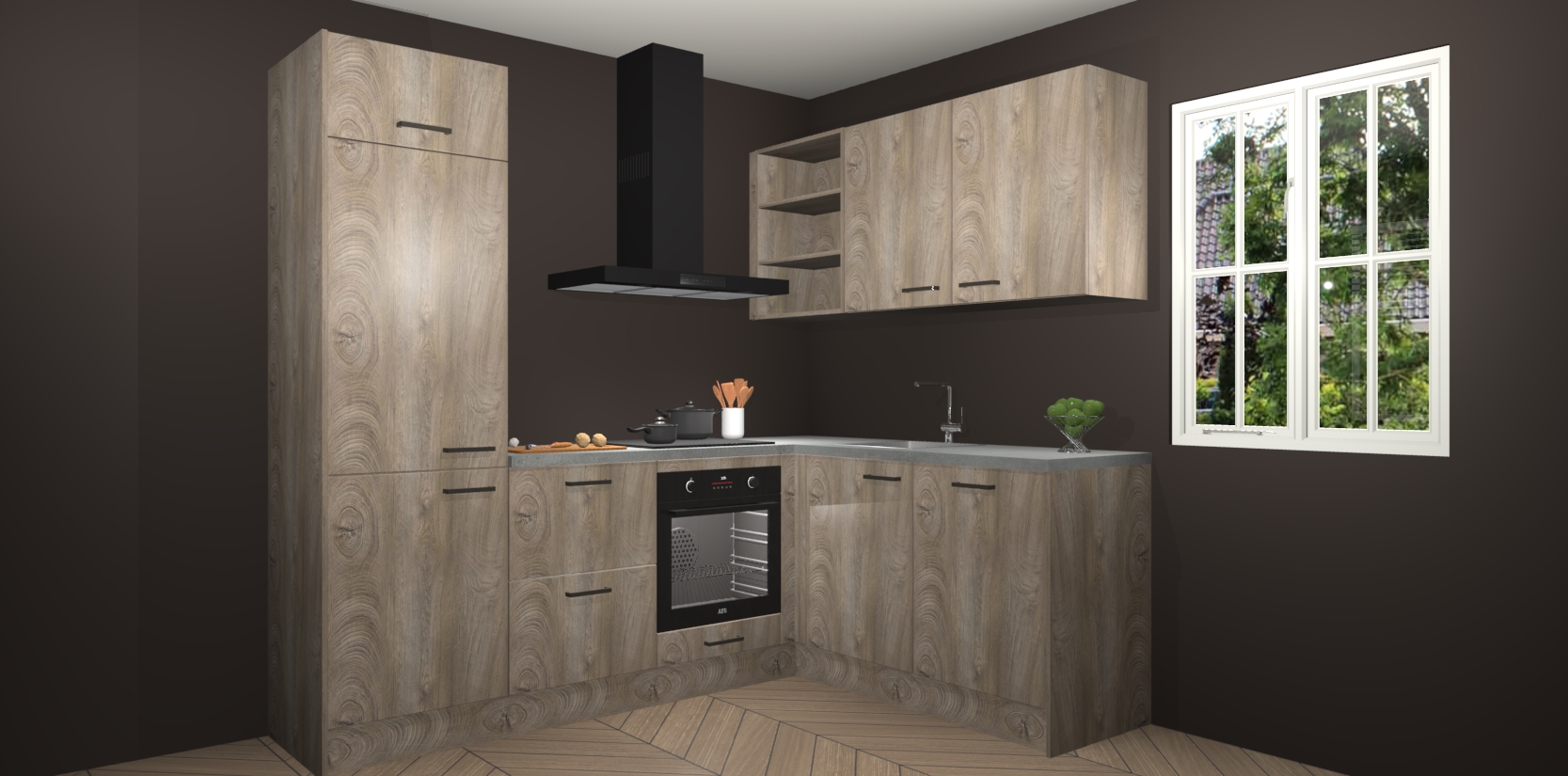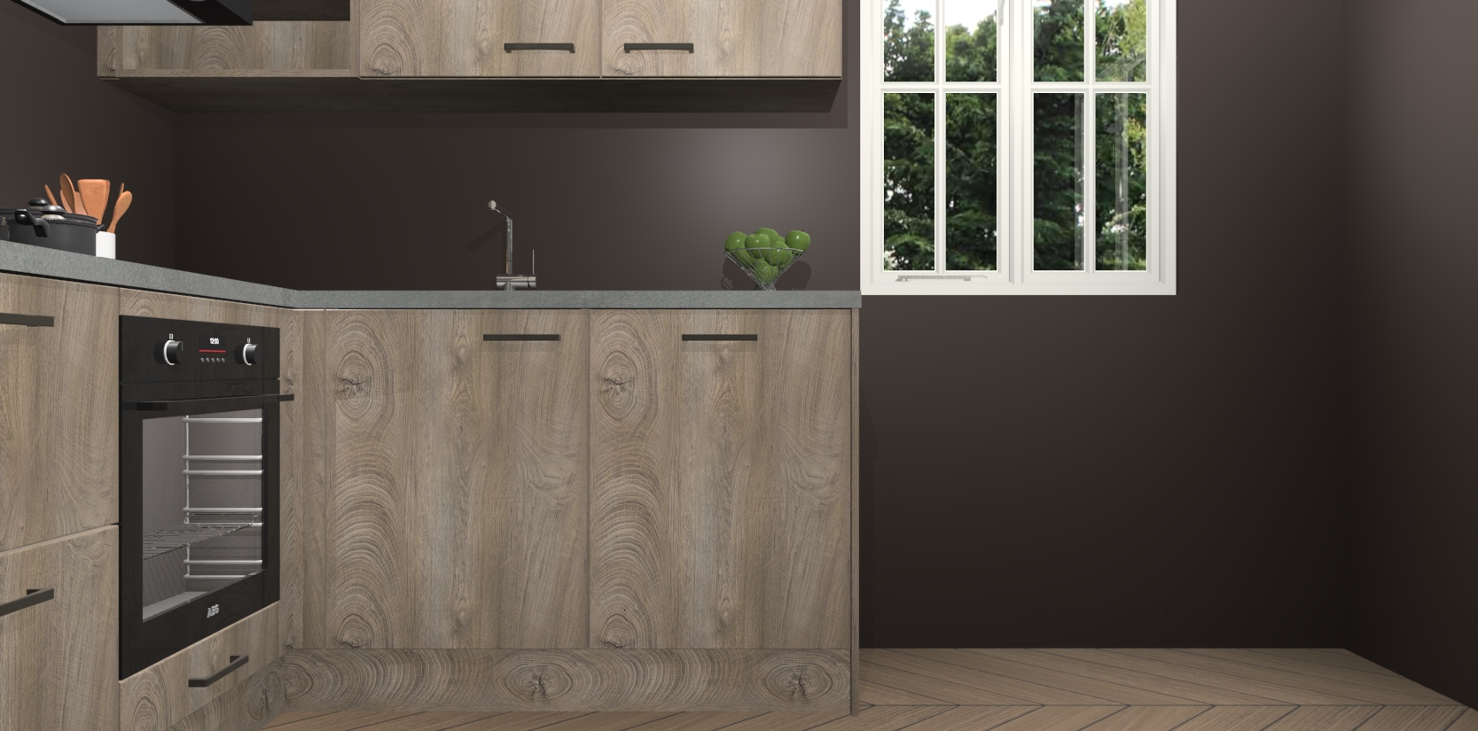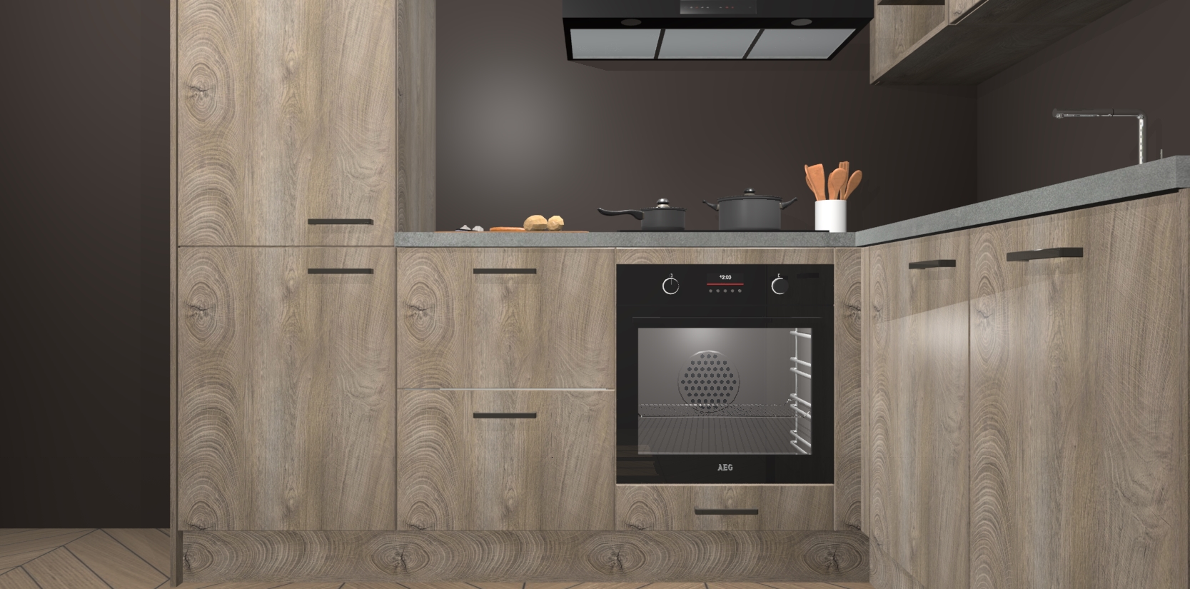Dit model biedt u voldoende opbergruimte en vijf ingebouwde apparaten: een oven, inductiekookplaat, afzuigkap, vaatwasser en koelkast. Deze apparaten kunnen gemakkelijk worden geüpgrade naar AEG nadat u besteld heeft. De verschillende laden en kastjes bevatten softclose-deuren waardoor ze gezellig dichtvallen met een geruststellend helemaal geruisloos geluid. En dat is nog niet alles! We garanderen ook dat de prijs altijd laag blijft - dus haal nu uw Cantaro Eiken keuken Krakau terwijl het kan.