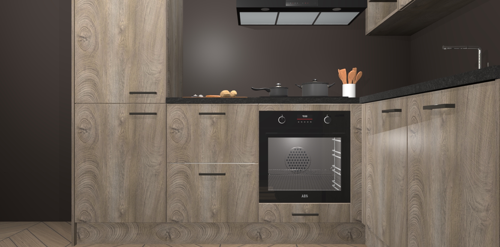 Dit model biedt u voldoende opbergruimte en vijf ingebouwde apparaten: een oven, inductiekookplaat, afzuigkap, vaatwasser en koelkast. Deze apparaten kunnen gemakkelijk worden geüpgrade naar AEG nadat u besteld heeft. De verschillende laden en kastjes bevatten softclose-deuren waardoor ze gezellig dichtvallen met een geruststellend helemaal geruisloos geluid. En dat is nog niet alles! We garanderen ook dat de prijs altijd laag blijft - dus haal nu uw Cantaro Eiken keuken Krakau terwijl het kan.