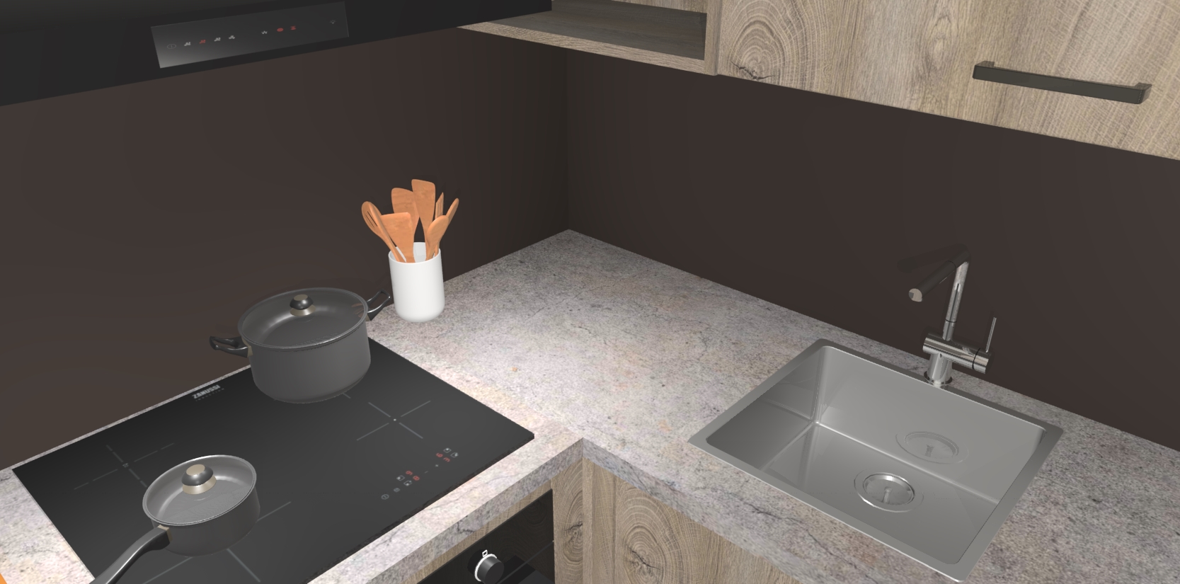 - Uitsparing van kookplaat, spoelbak en kraan dient u zelf te verzorgen.