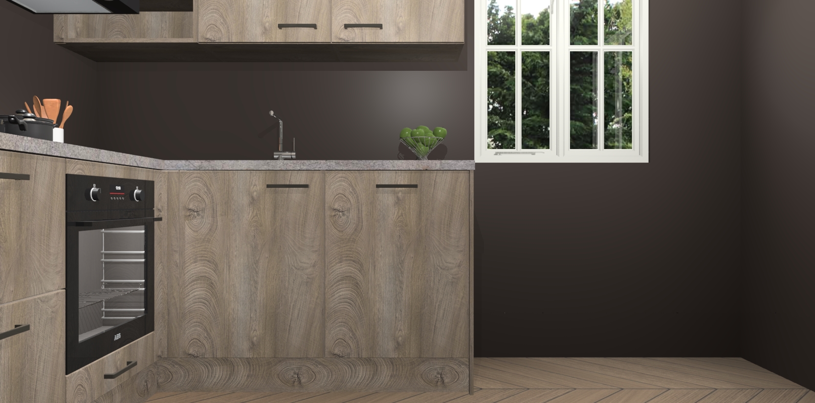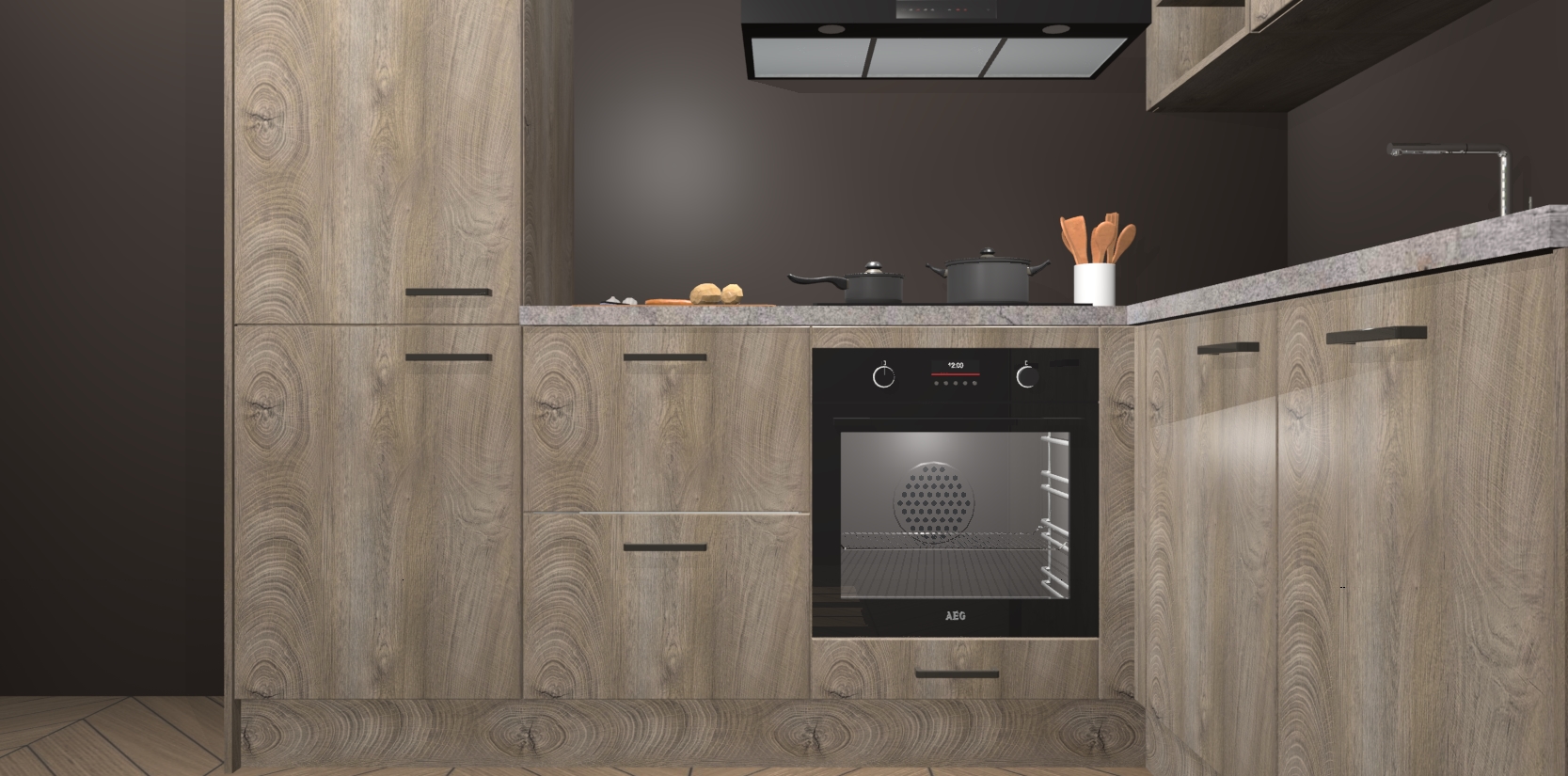 Dit model biedt u voldoende opbergruimte en vijf ingebouwde apparaten: een oven, inductiekookplaat, afzuigkap, vaatwasser en koelkast. Deze apparaten kunnen gemakkelijk worden geüpgrade naar AEG nadat u besteld heeft. De verschillende laden en kastjes bevatten softclose-deuren waardoor ze gezellig dichtvallen met een geruststellend helemaal geruisloos geluid. En dat is nog niet alles! We garanderen ook dat de prijs altijd laag blijft - dus haal nu uw Cantaro Eiken keuken Krakau terwijl het kan.
