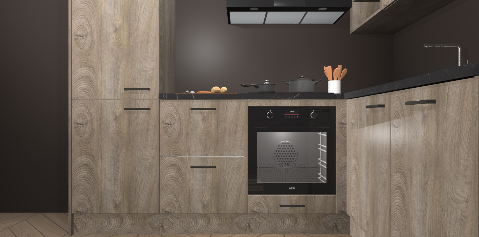 Dit model biedt u voldoende opbergruimte en vijf ingebouwde apparaten: een oven, inductiekookplaat, afzuigkap, vaatwasser en koelkast. Deze apparaten kunnen gemakkelijk worden geüpgrade naar AEG nadat u besteld heeft. De verschillende laden en kastjes bevatten softclose-deuren waardoor ze gezellig dichtvallen met een geruststellend helemaal geruisloos geluid. En dat is nog niet alles! We garanderen ook dat de prijs altijd laag blijft - dus haal nu uw Cantaro Eiken keuken Krakau terwijl het kan.