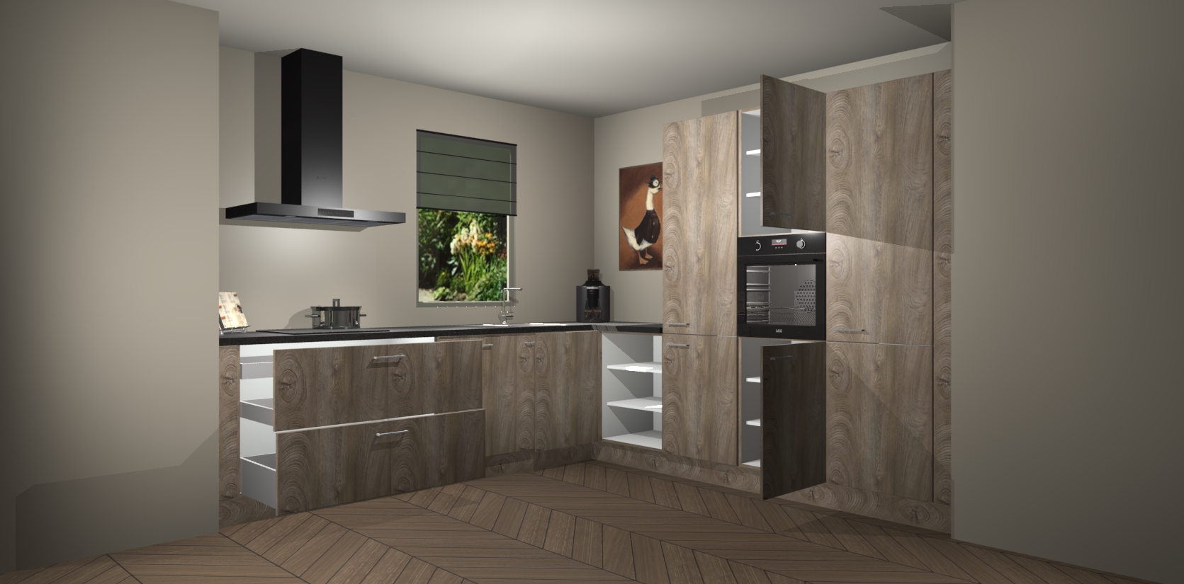 Welkom bij de Cantaro Eiken keuken Laos. Deze prachtige keuken zal de komende jaren het middelpunt van de belangstelling in uw huis zijn. Uitgerust met vijf inbouwapparaten komt u nooit kookgereedschap tekort. Bovendien geeft de warme houtlook elke ruimte een uitnodigende en tijdloze uitstraling.