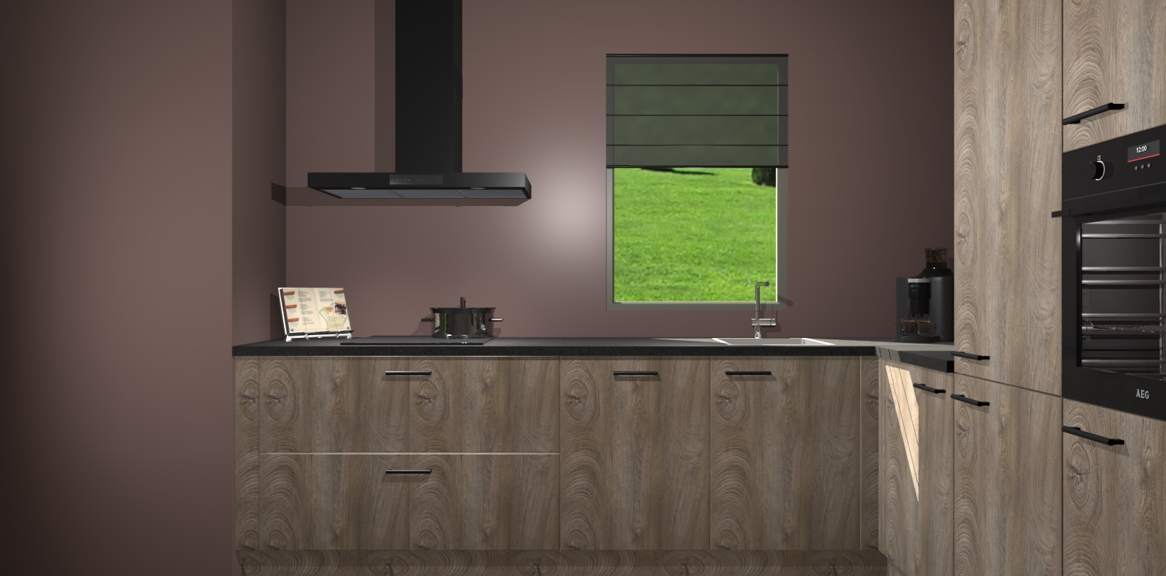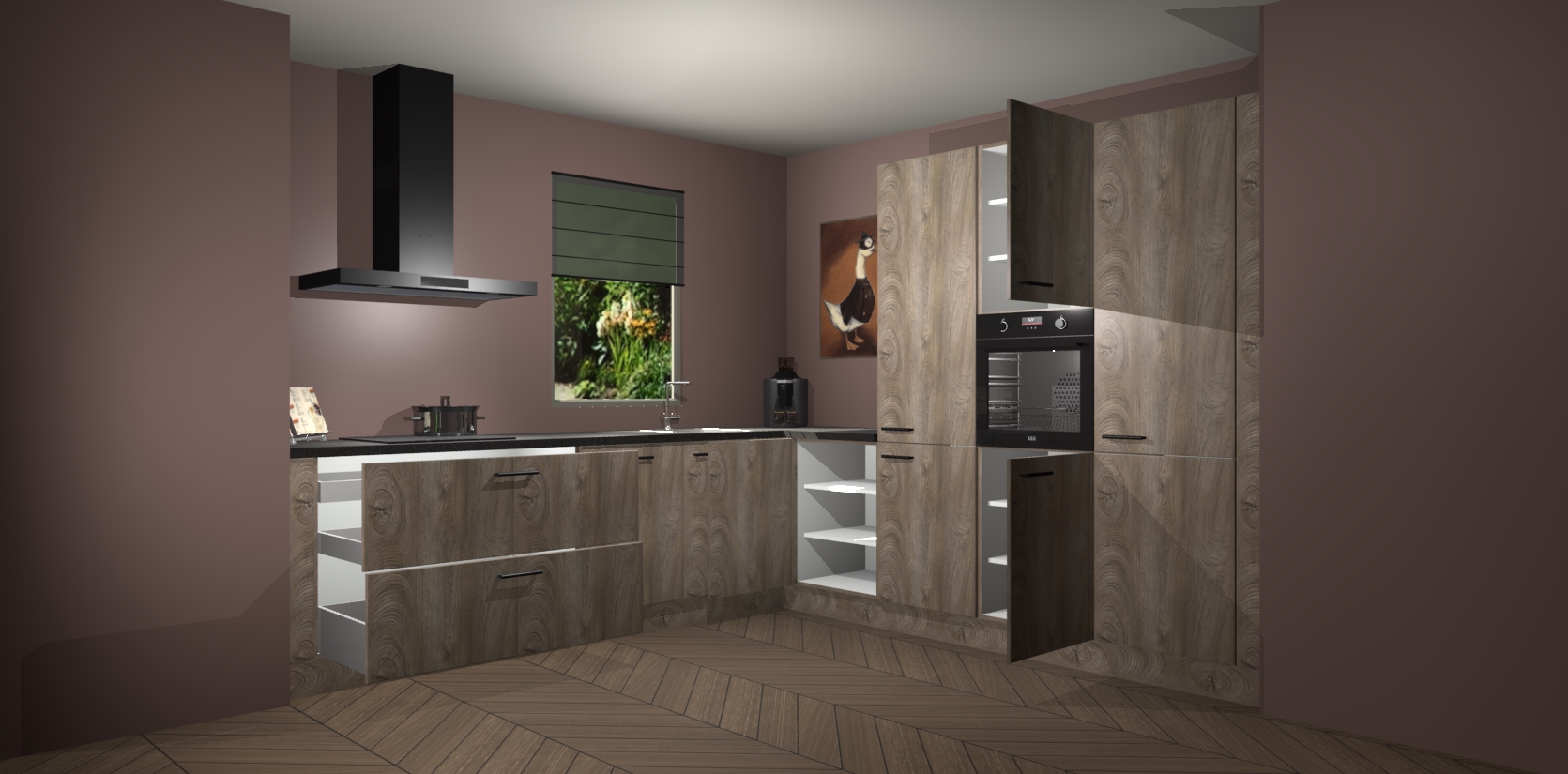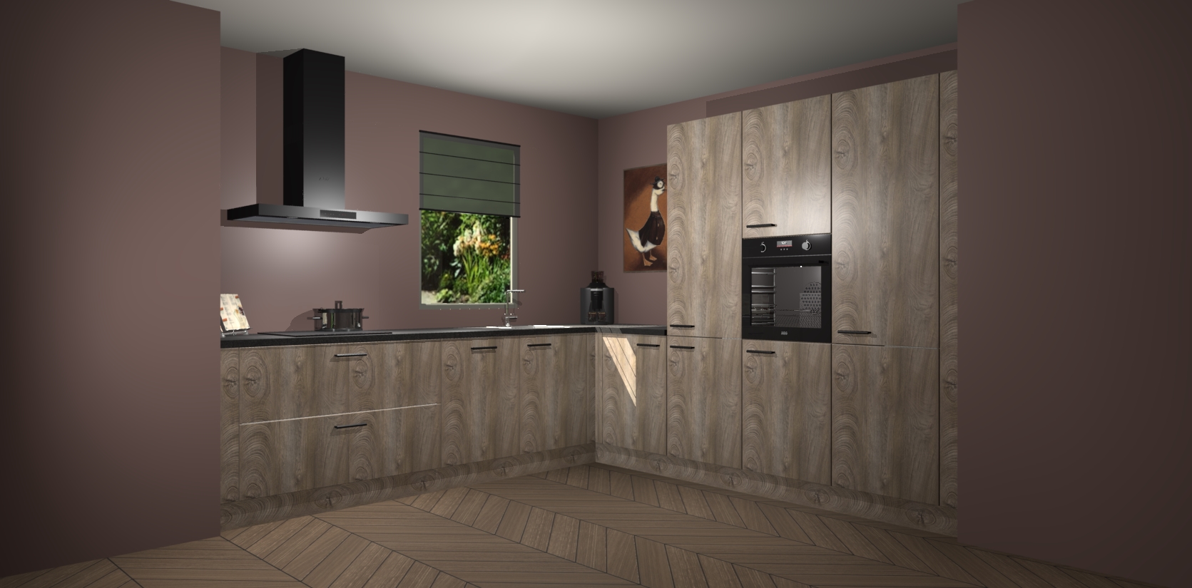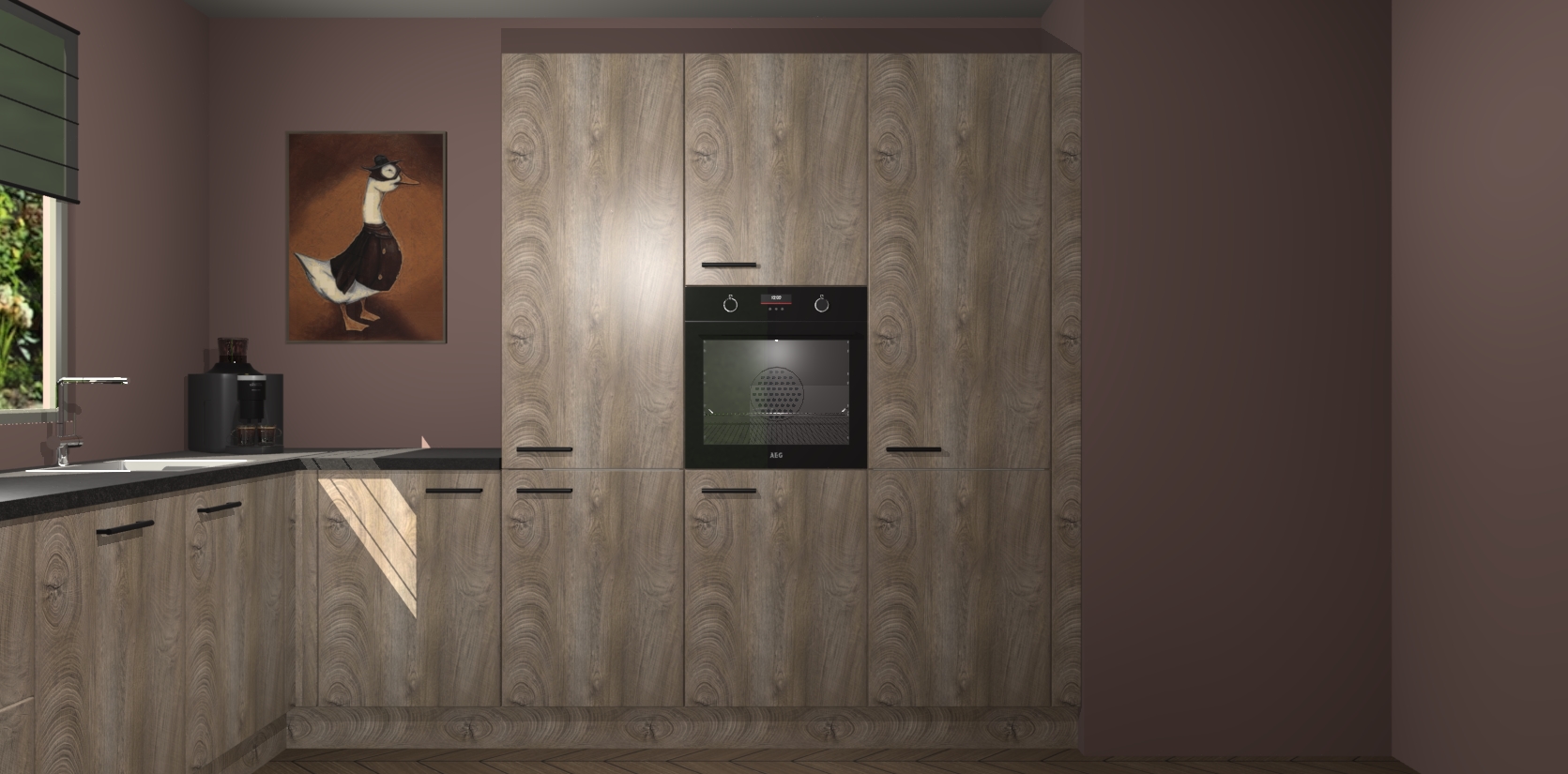 Welkom bij de Cantaro Eiken keuken Laos. Deze prachtige keuken zal de komende jaren het middelpunt van de belangstelling in uw huis zijn. Uitgerust met vijf inbouwapparaten komt u nooit kookgereedschap tekort. Bovendien geeft de warme houtlook elke ruimte een uitnodigende en tijdloze uitstraling.