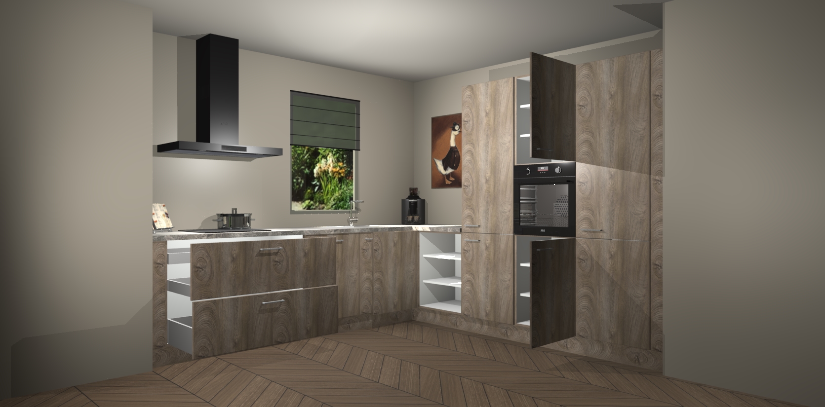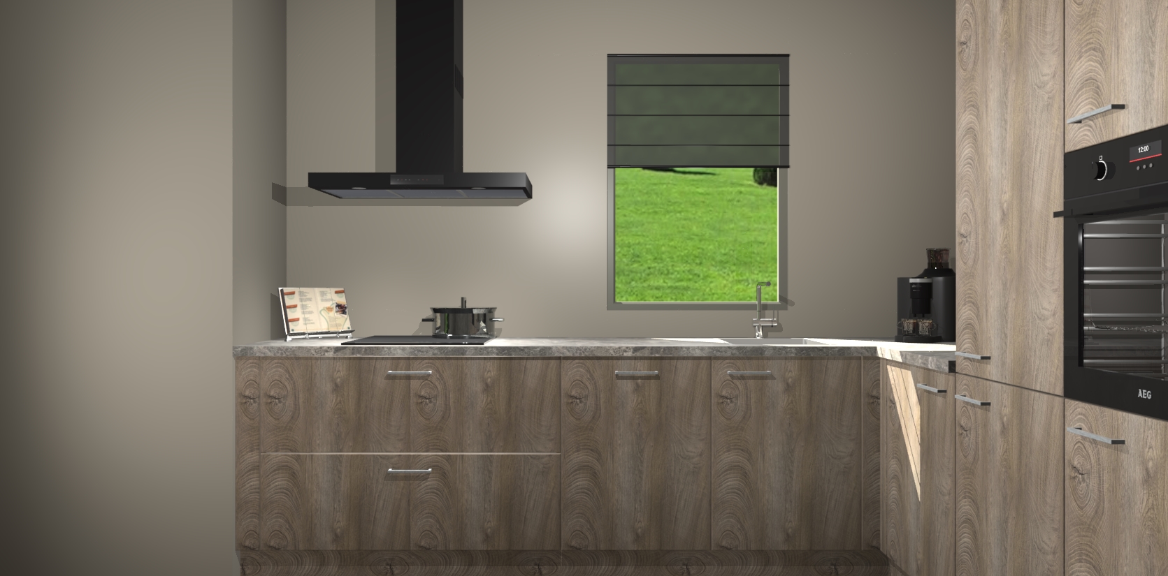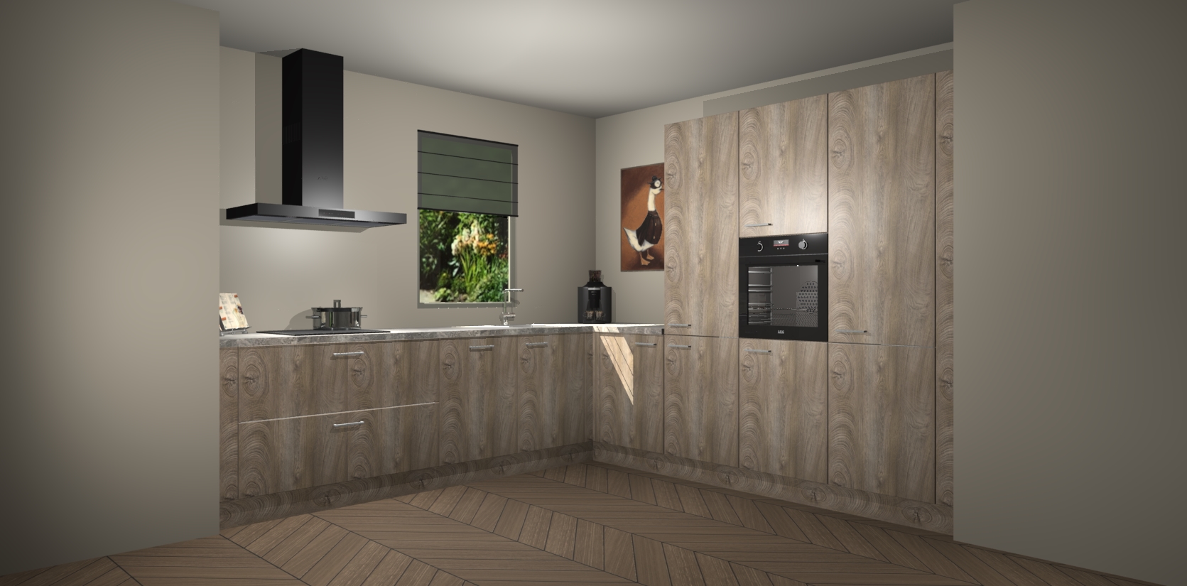 Welkom bij de Cantaro Eiken keuken Laos. Deze prachtige keuken zal de komende jaren het middelpunt van de belangstelling in uw huis zijn. Uitgerust met vijf inbouwapparaten komt u nooit kookgereedschap tekort. Bovendien geeft de warme houtlook elke ruimte een uitnodigende en tijdloze uitstraling.