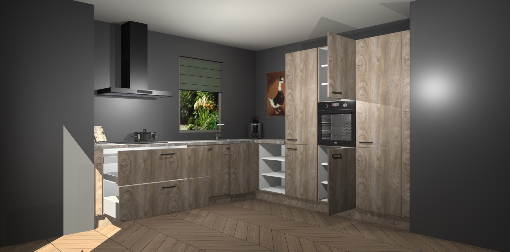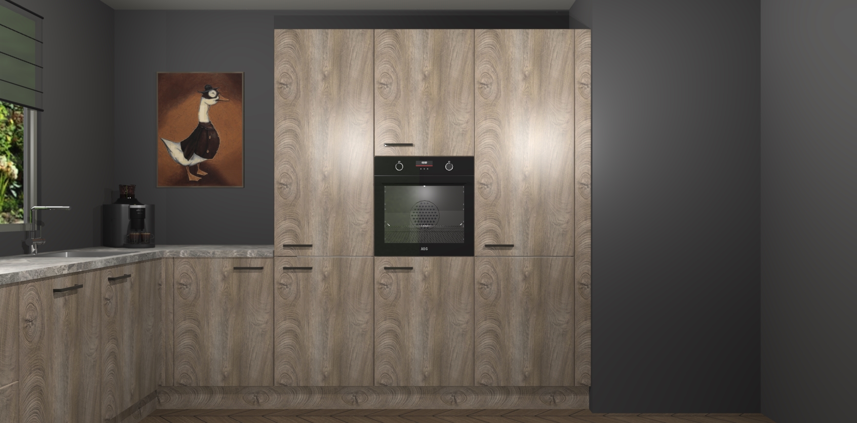Welkom bij de Cantaro Eiken keuken Laos. Deze prachtige keuken zal de komende jaren het middelpunt van de belangstelling in uw huis zijn. Uitgerust met vijf inbouwapparaten komt u nooit kookgereedschap tekort. Bovendien geeft de warme houtlook elke ruimte een uitnodigende en tijdloze uitstraling.