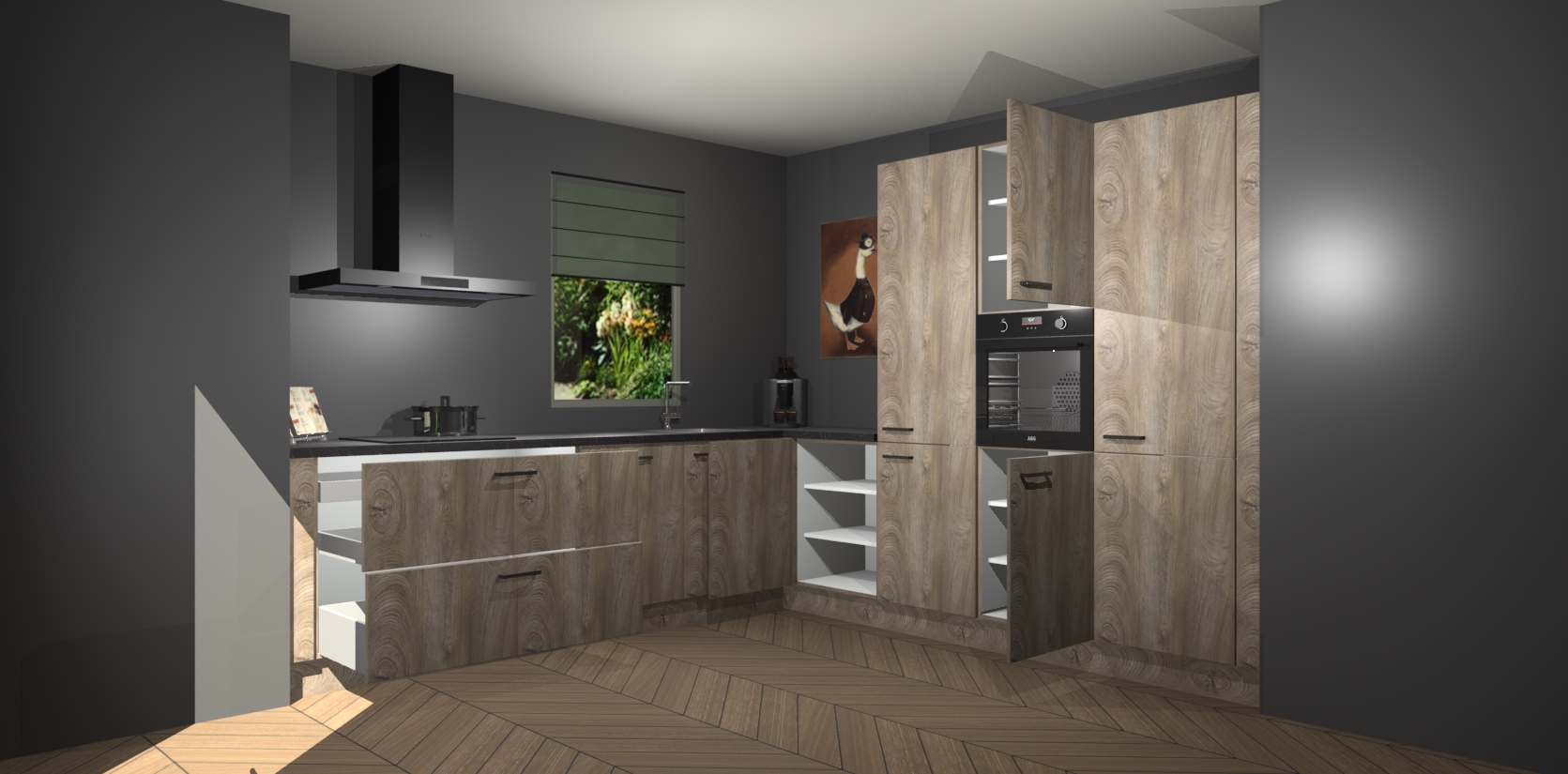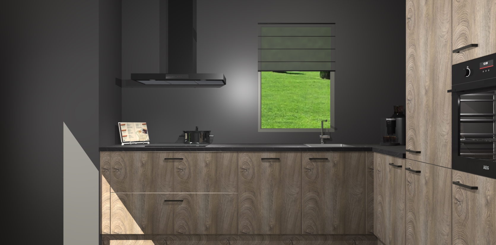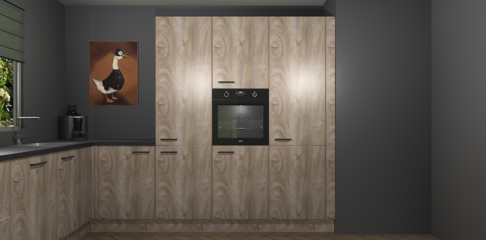 Welkom bij de Cantaro Eiken keuken Laos. Deze prachtige keuken zal de komende jaren het middelpunt van de belangstelling in uw huis zijn. Uitgerust met vijf inbouwapparaten komt u nooit kookgereedschap tekort. Bovendien geeft de warme houtlook elke ruimte een uitnodigende en tijdloze uitstraling.