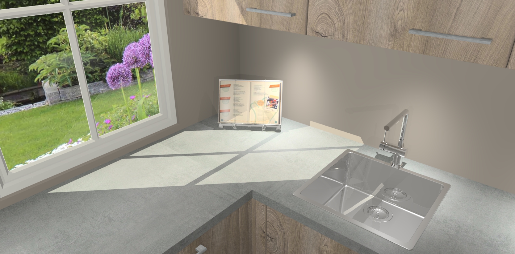 - Bij een hoekwerkblad zijn de hoeken in gevreesd en op maat gemaakt